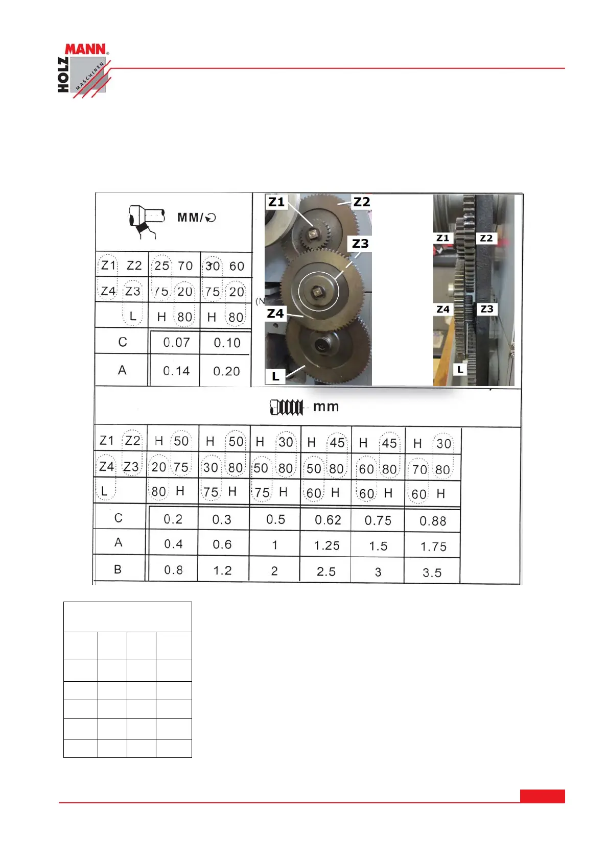 the change gears are depicted as substituted the letters and numbers of the table after.