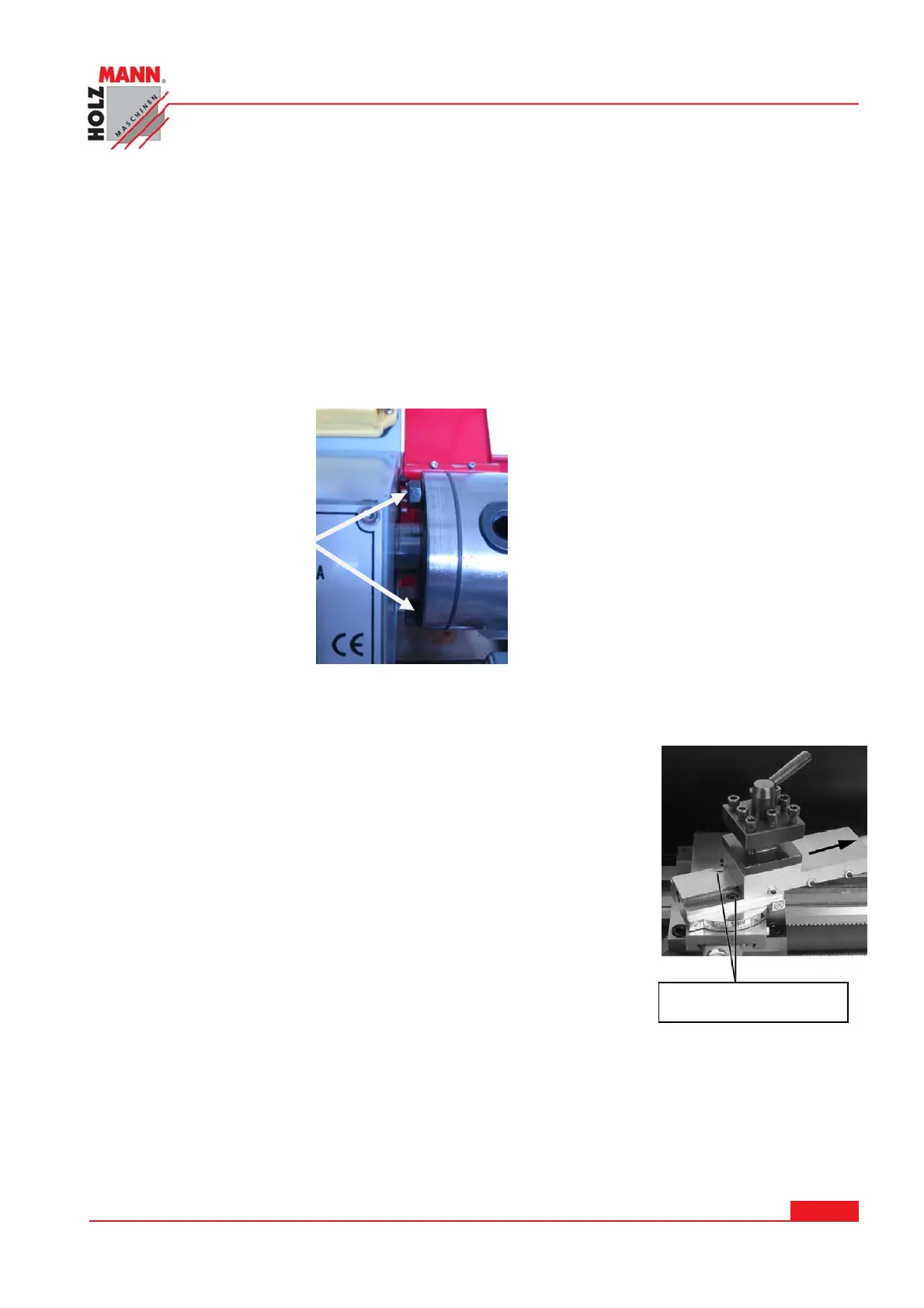 For angular adjustment of the upper slide, loosen the screws, turn the