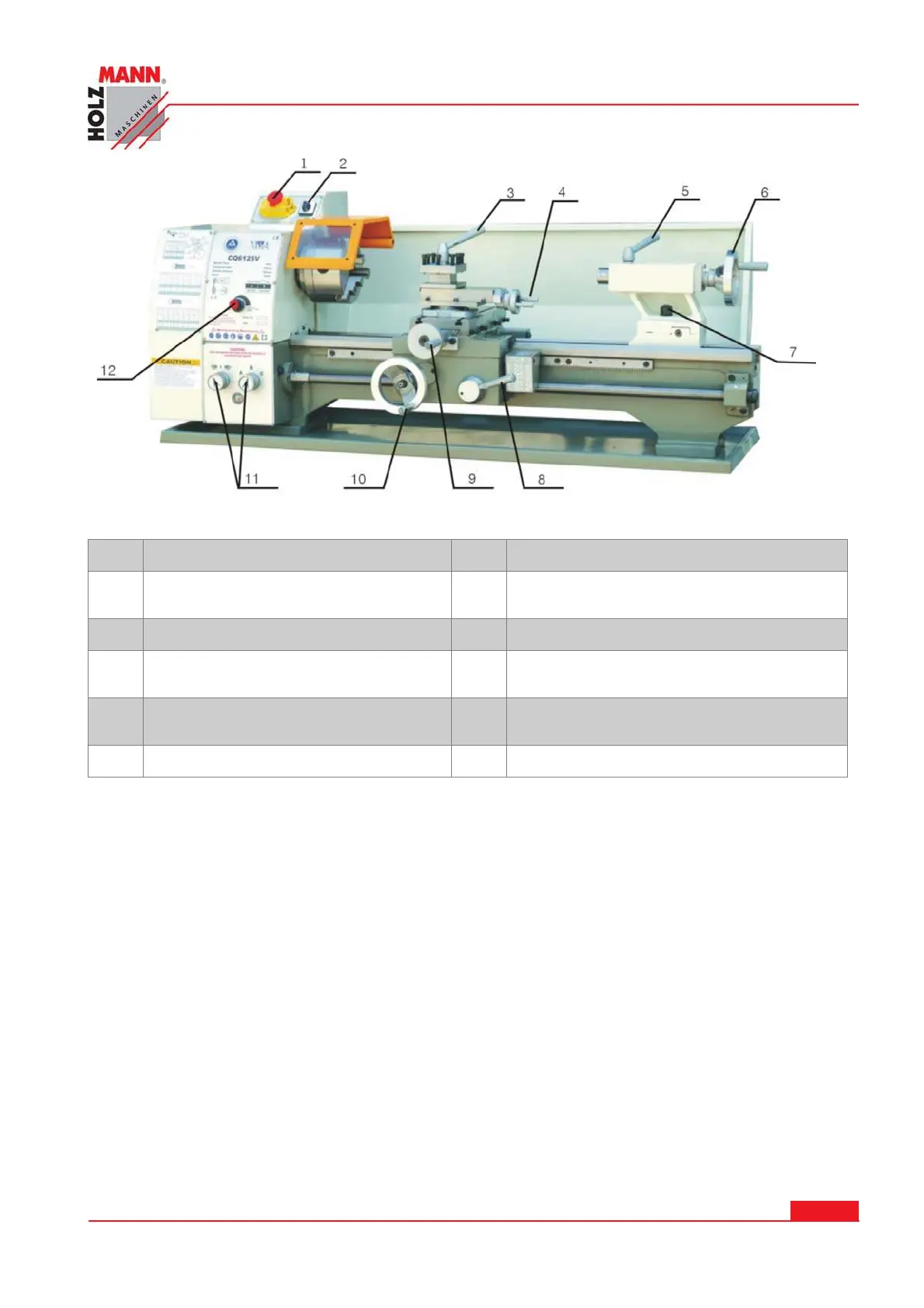 Emergency button ON/OFF switch 7 Screw for tailstock fixing