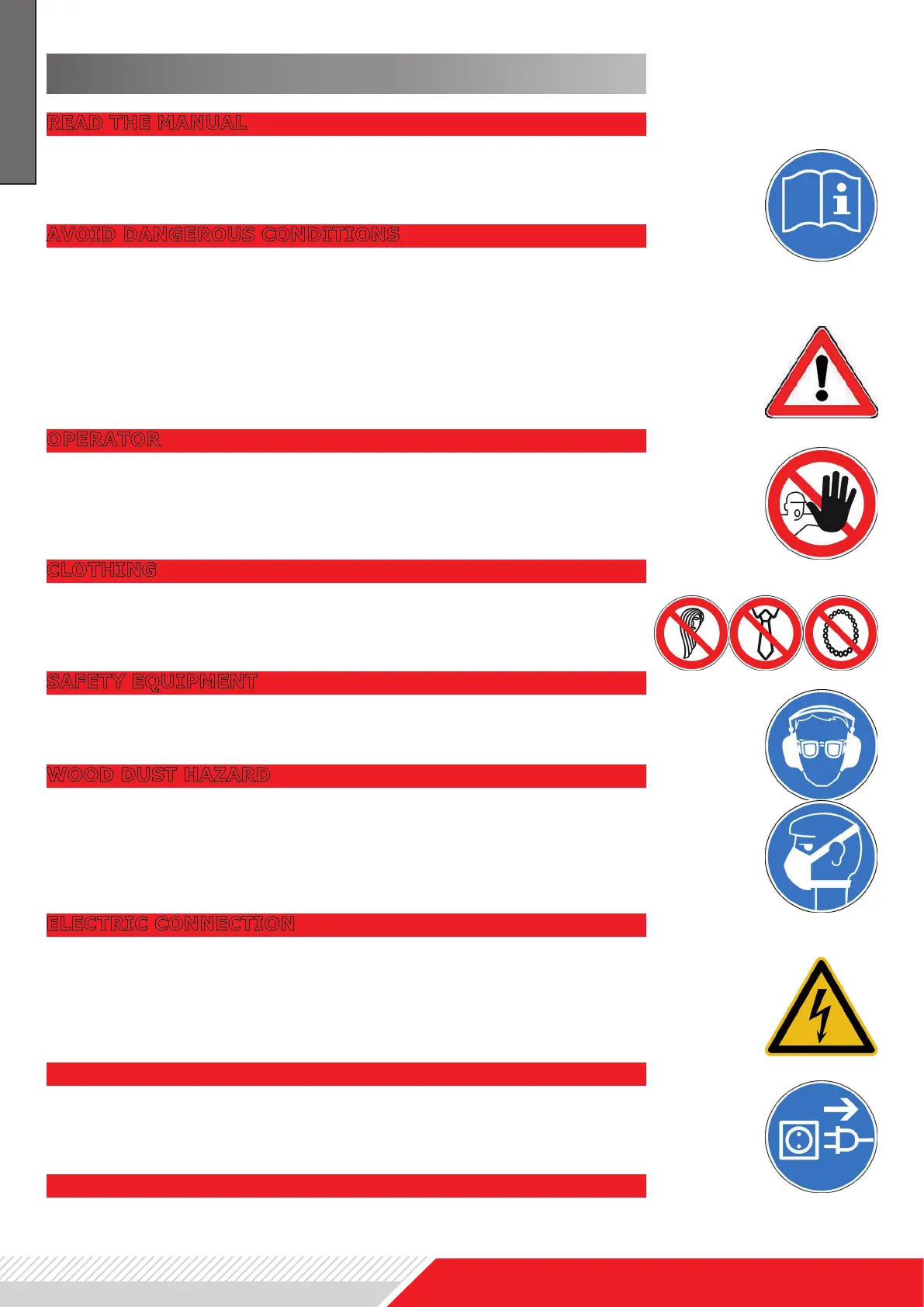 The use of the machine is forbidden if you are tired, not concen-
