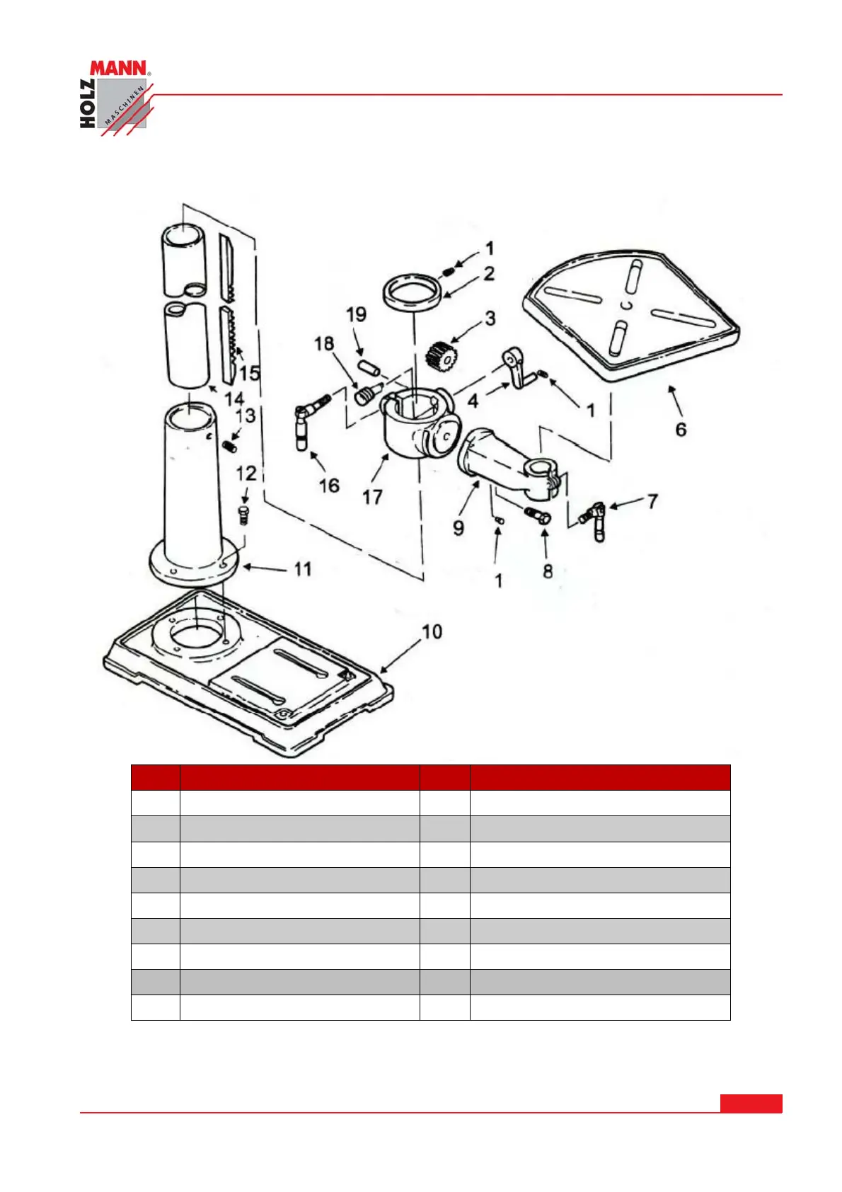 8 Screw hex HD M16x20-35 17 Support table w/indicator