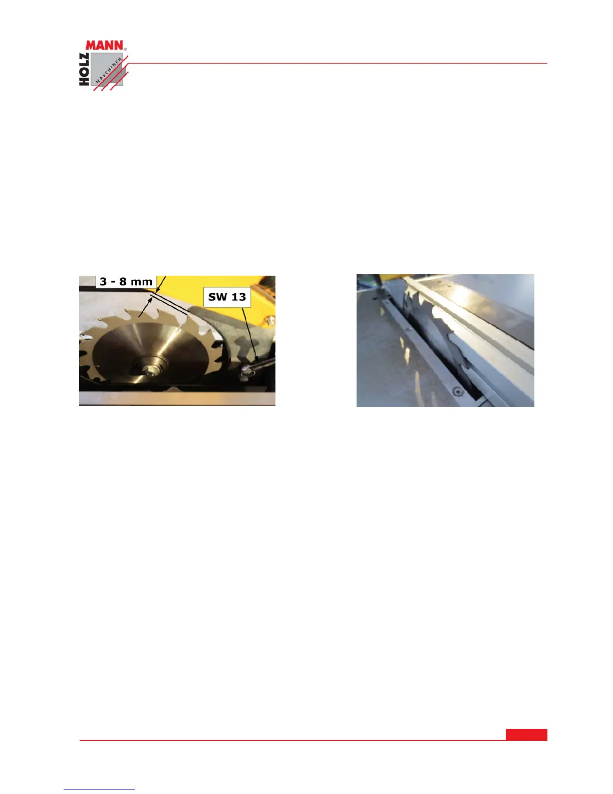 Stellen Sie den Spaltkeil auf einen Abstand von ca. 3mm – 8mm zum Sägeblatt ein.