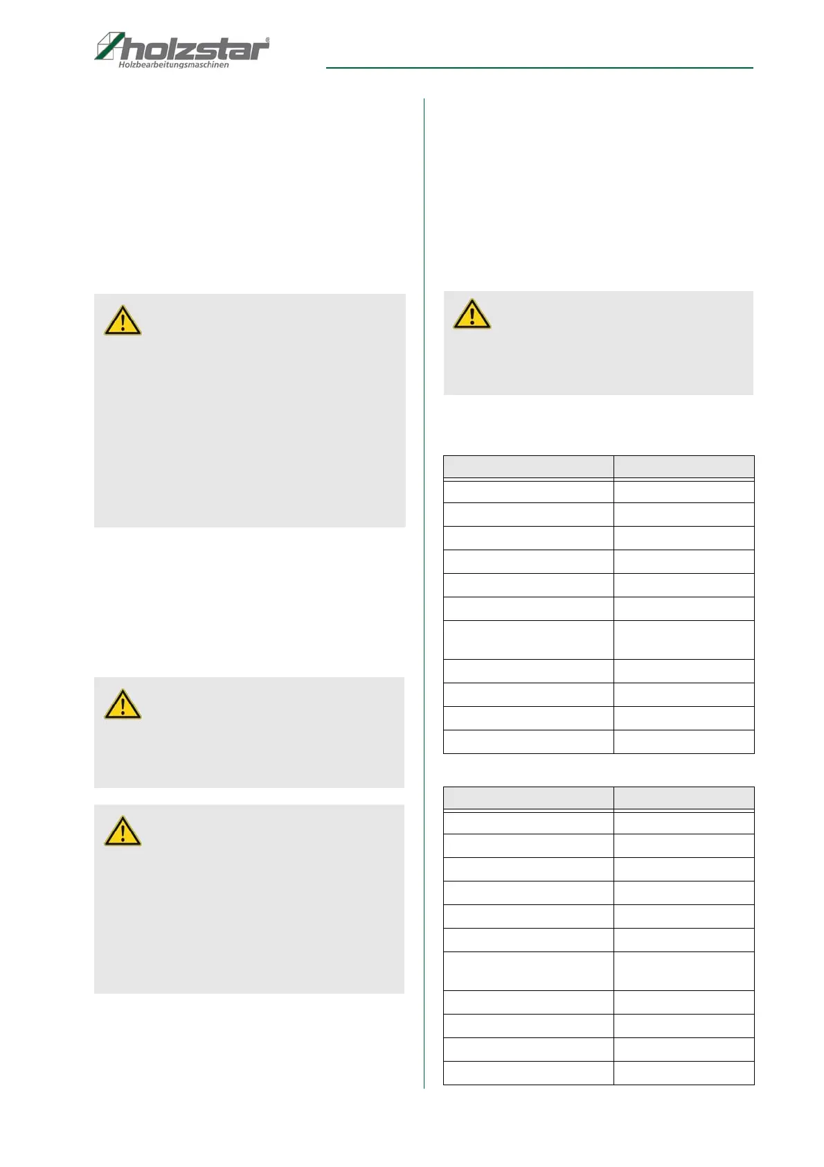 - Danger from noise and dust (wear ear protection