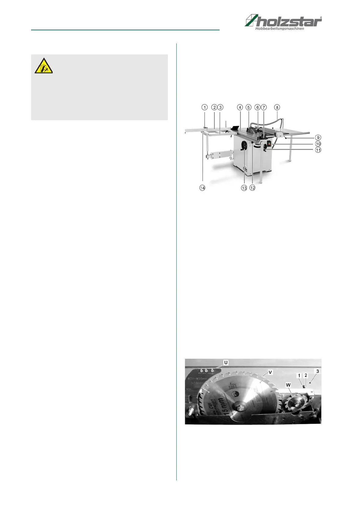 U Separating knife 1 Adjusting screw Auxiliary saw blade