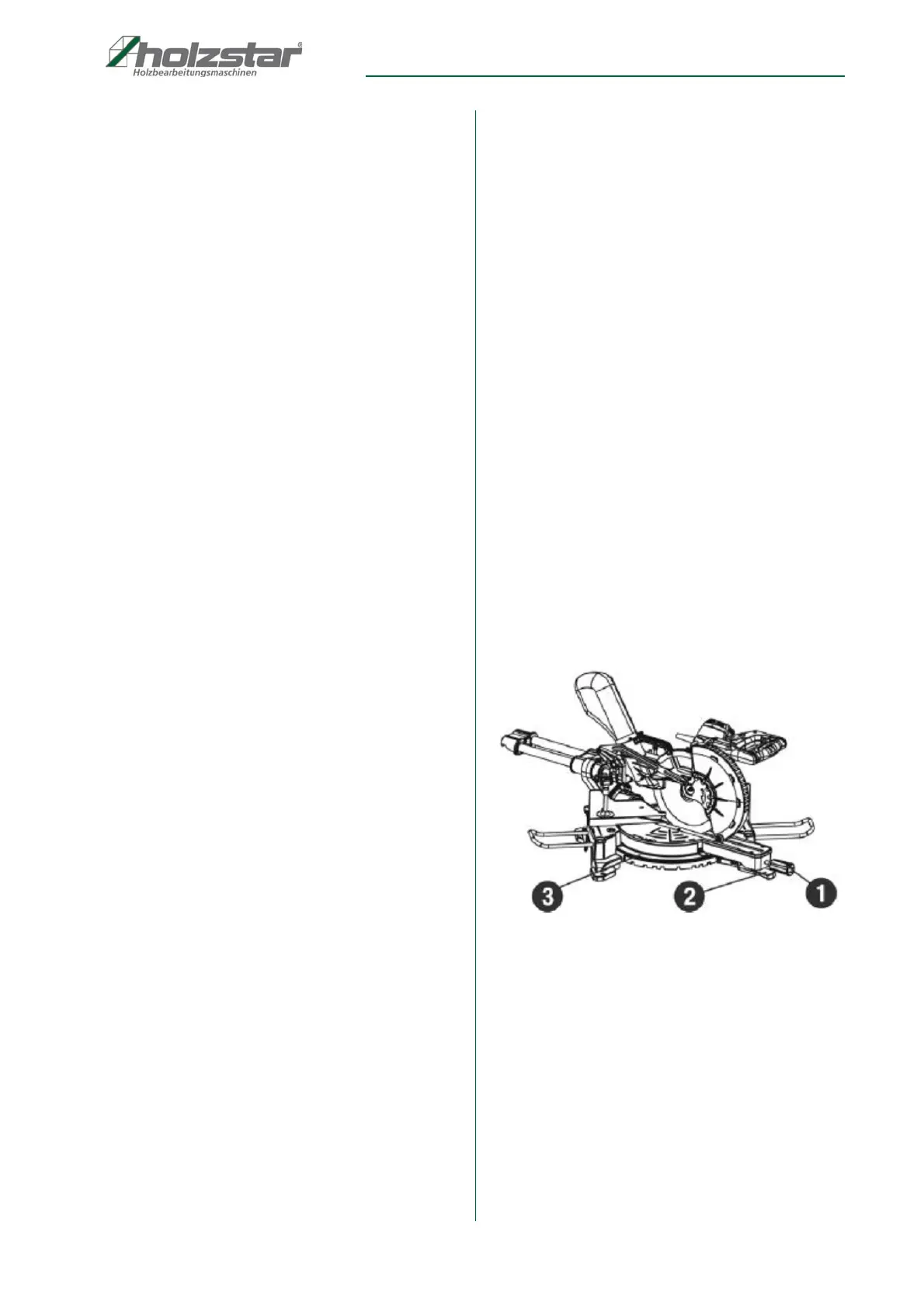 Step 1: Pull the release button (2) and raise the saw arm