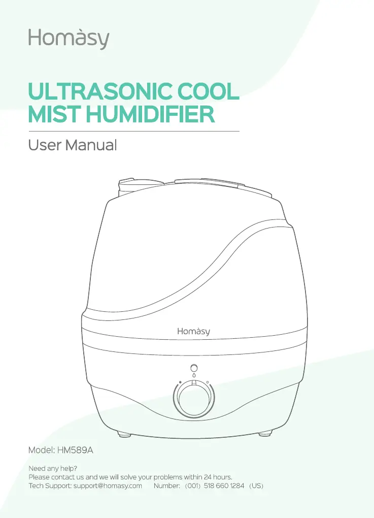 If your Homasy Humidifier's LED indicator is blue but no mist is being produced, consider the following: * The water tank might not have enough water. Refill and reinstall the water tank. * The mist level might be set too low. Adjust it to the maximum setting. * There might be mineral buildup on the atomizer. Check if air comes out of the nozzle; if so, clean the water scale off the atomizer as instructed. * The base might be overfilled. Remove the tank, empty the base, and then place the filled tank back on the empty base.