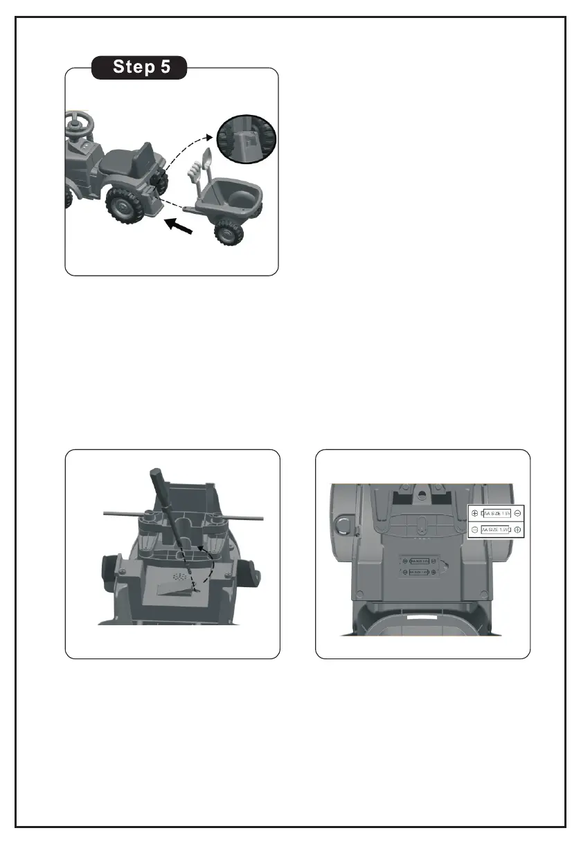 Turn over the tractor body,and find the battery house.Loosen the screw