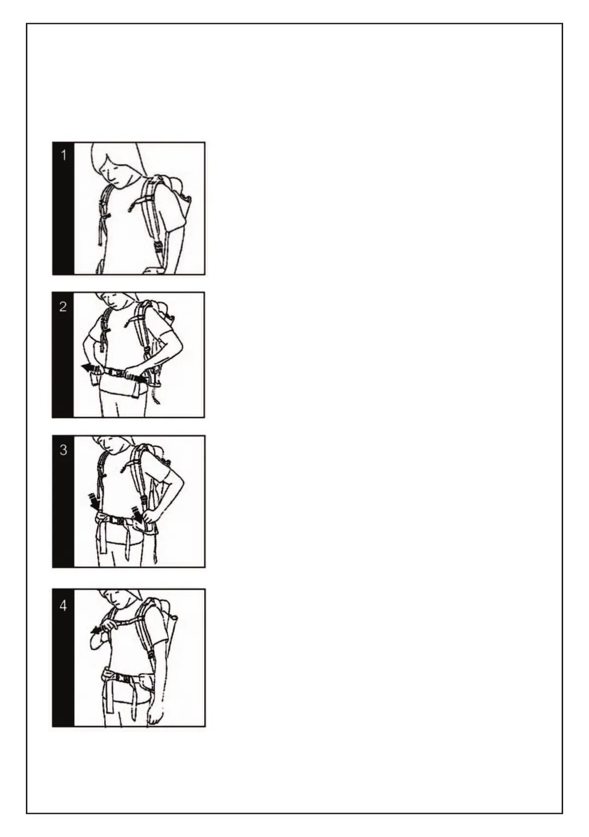 1) Place the carrier on your back, slide each arm into