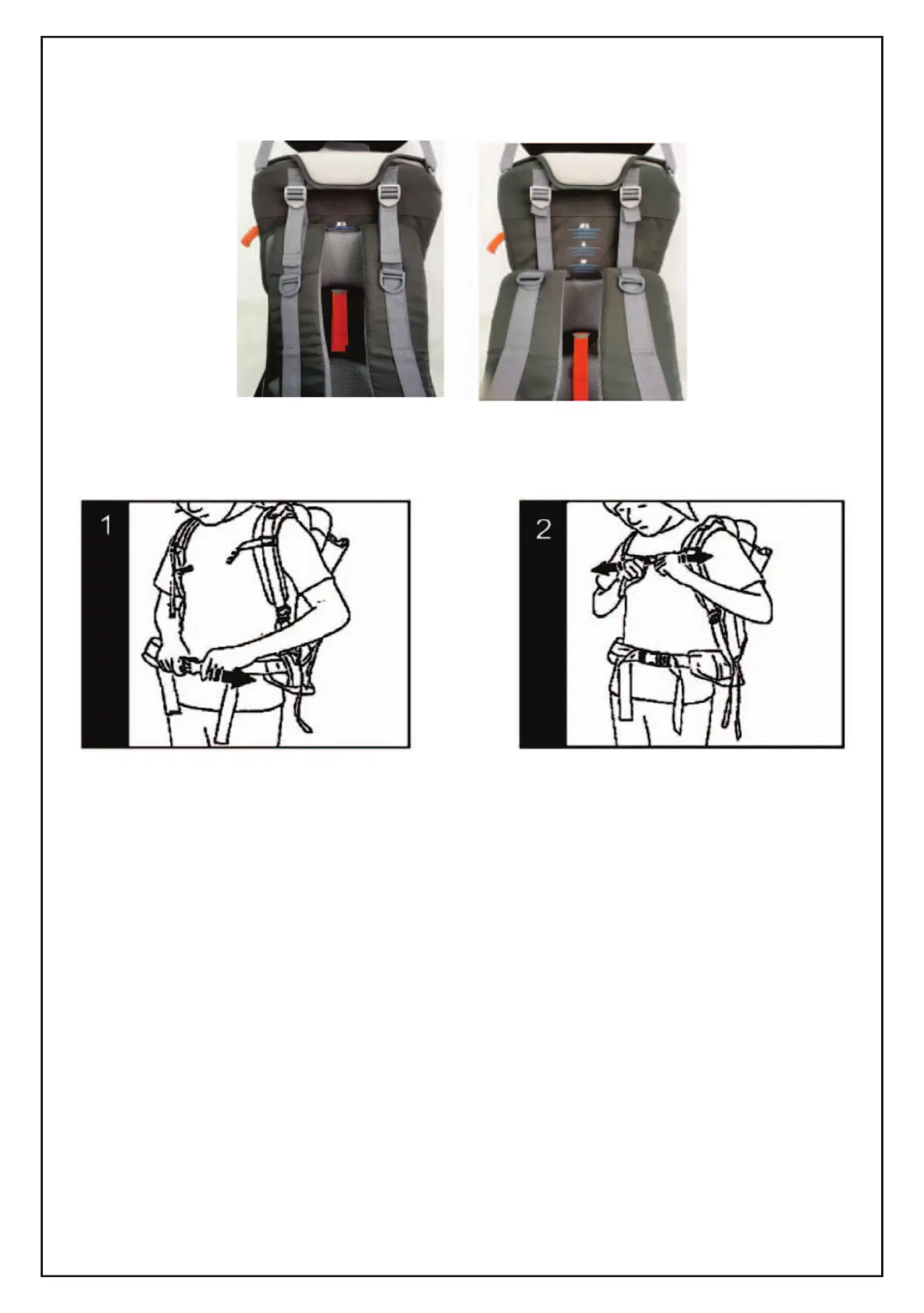 Adjust the height of the shoulder belt. There are three marks, XL, L & M - choose a