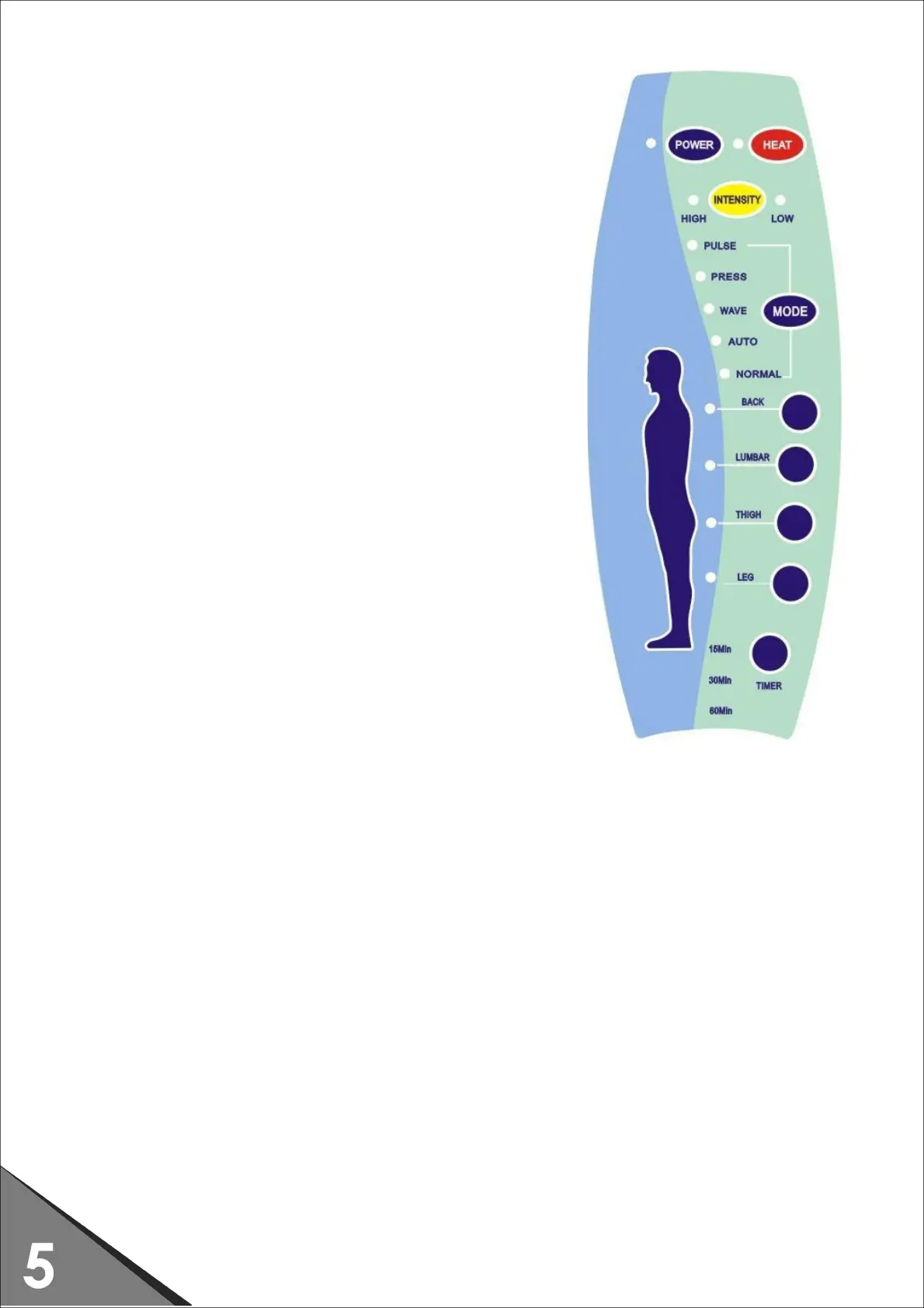 • Press the BACK, LUMBAR and THIGH key will to massage the