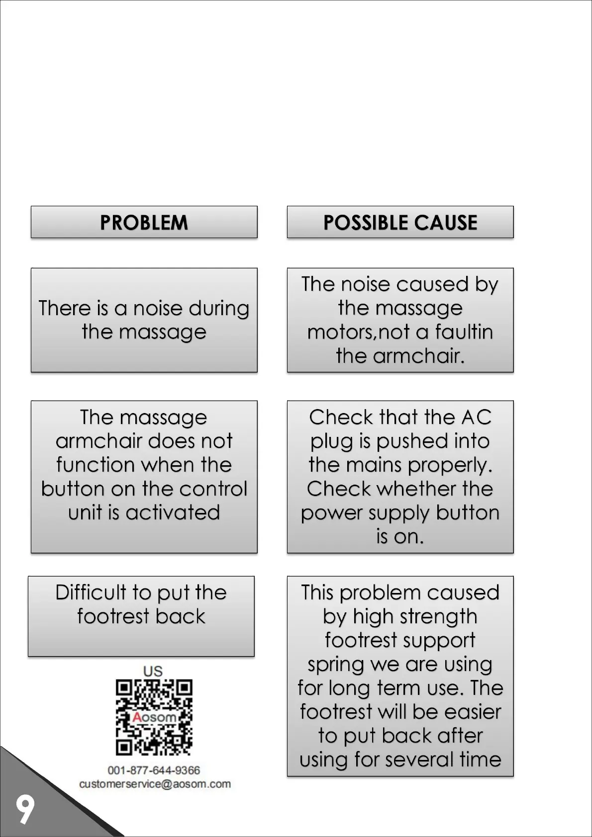 HOMCOM 700-088 - Troubleshooting; Noise During Massage; Armchair Not Functioning; Difficult Footrest Return