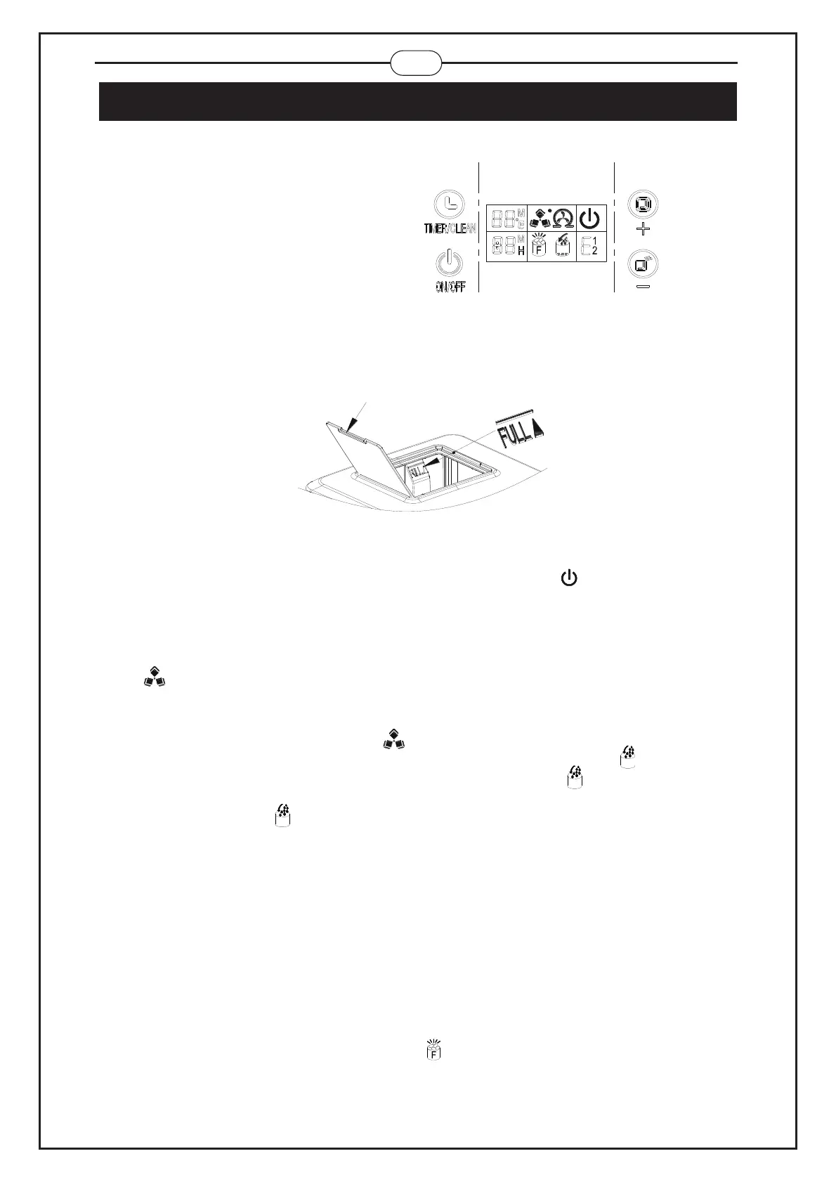 ,when the water in the bottom water tank is full, the symbol < > will be off, then