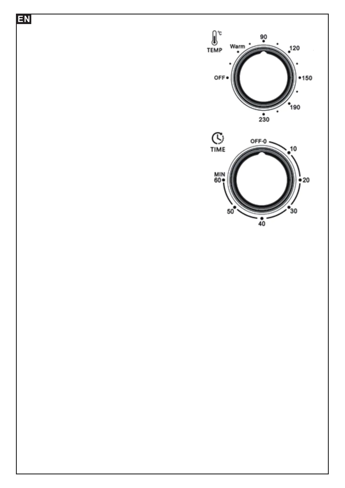 0-60 MINUTES: The Timer can be set up to 60 minutes.