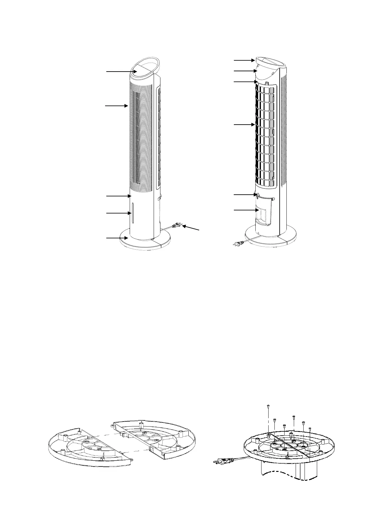 ventilateur. Fixez le corps du ventilateur et le socle à l’aide de quatre vis auto taraudeuses. Dans le même