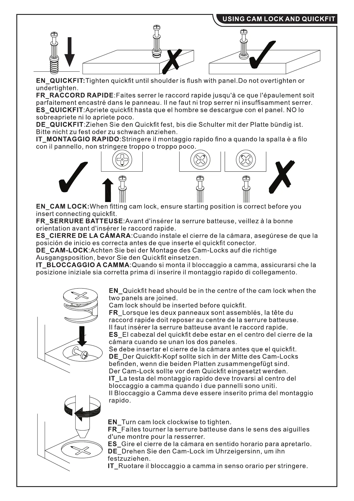 HOMCOM 835-471 - Using Cam Lock and Quickfit; Quickfit Operation; Cam Lock Installation; Cam Lock Tightening