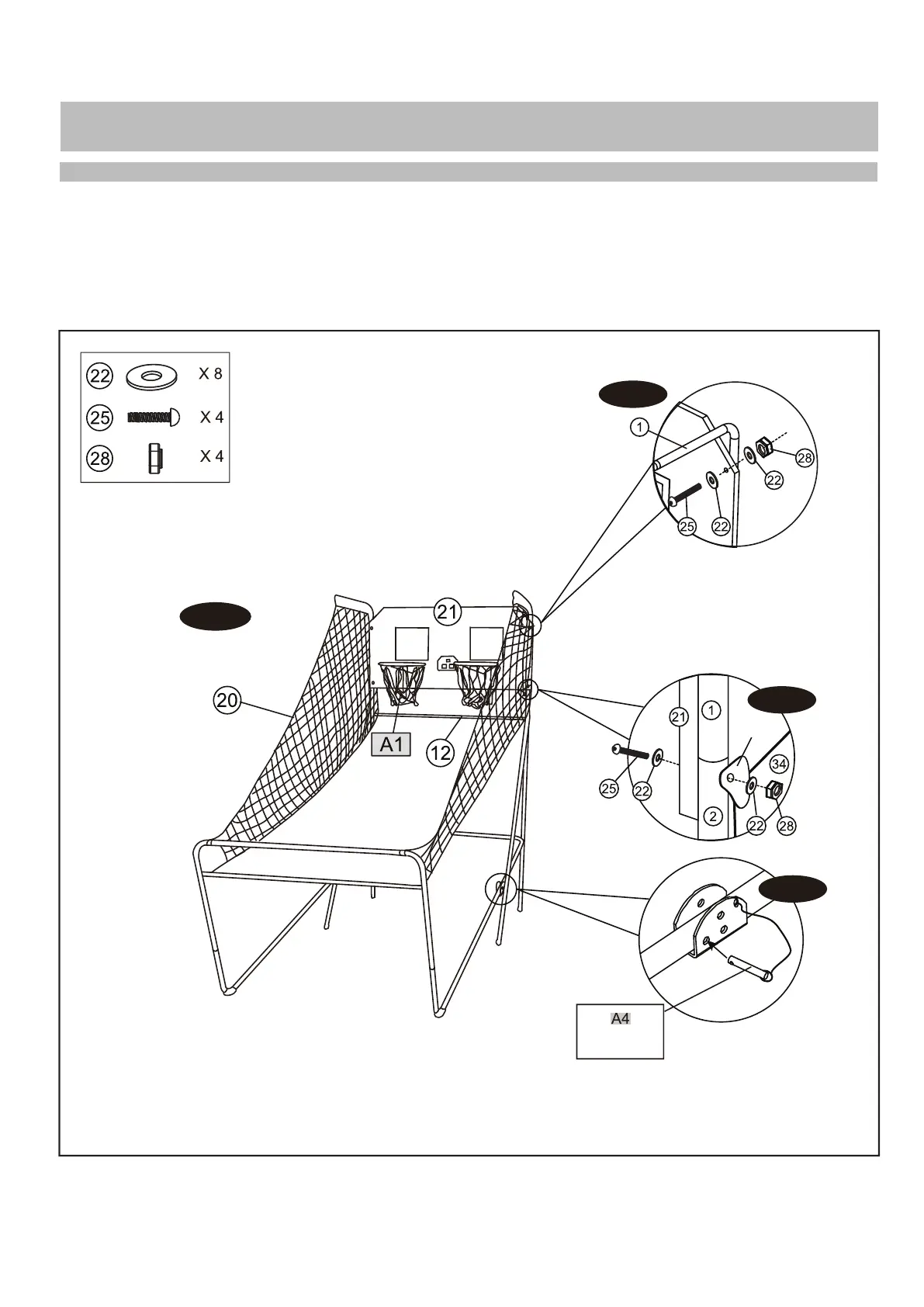 13.Fixar o encosto (21) ao topo do tubo 1 com os parafusos (25), arruelas (22) e porcas (28), como