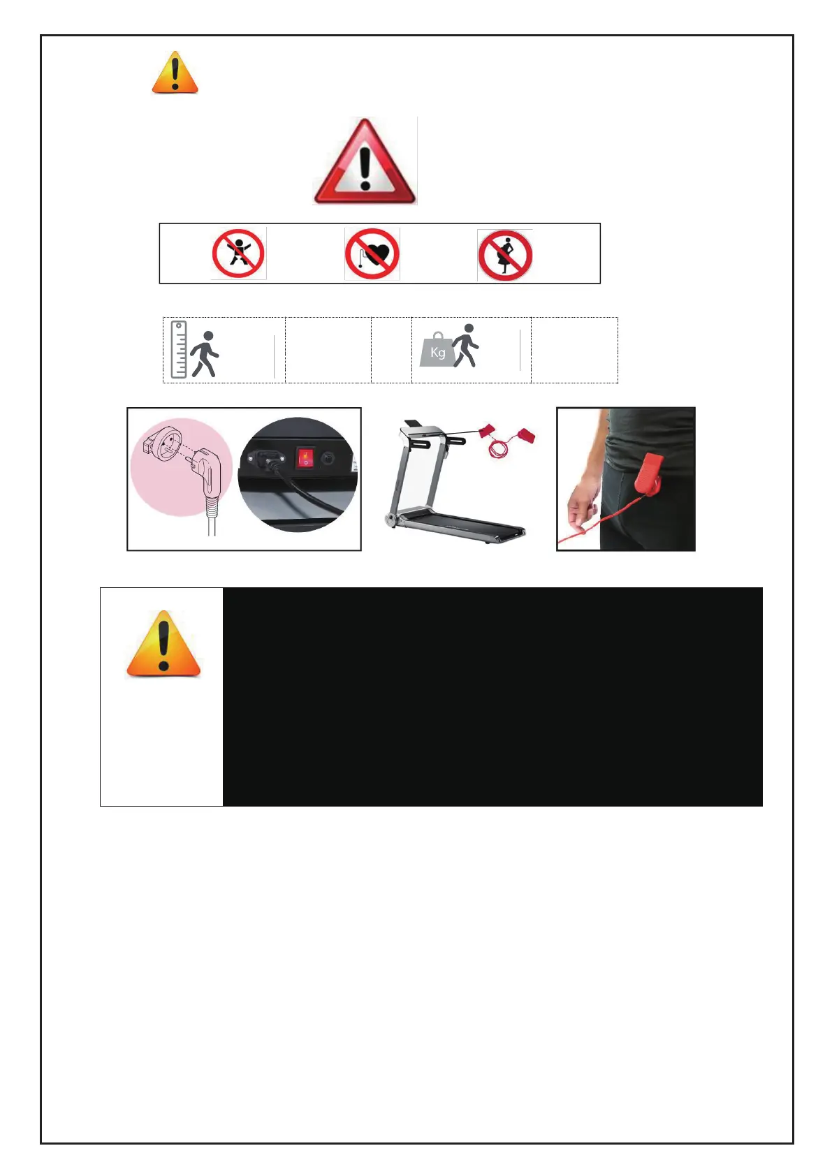 important instructions and warnings regarding the use of a treadmill before using it.