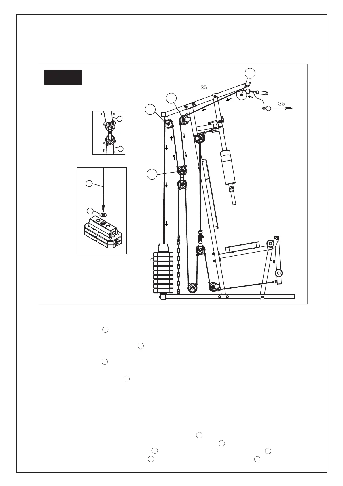 5. Fissare l'estremità del bullone del cavo 35 all'albero dell’Asta di Selezione Peso (5) con la Rondella in Plastica
