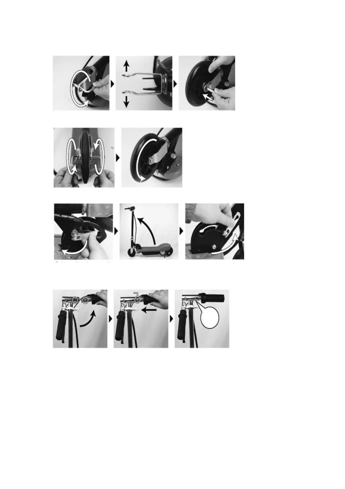Suelte la abrazadera de la articulación de bisagra. Despliegue el scooter hasta la