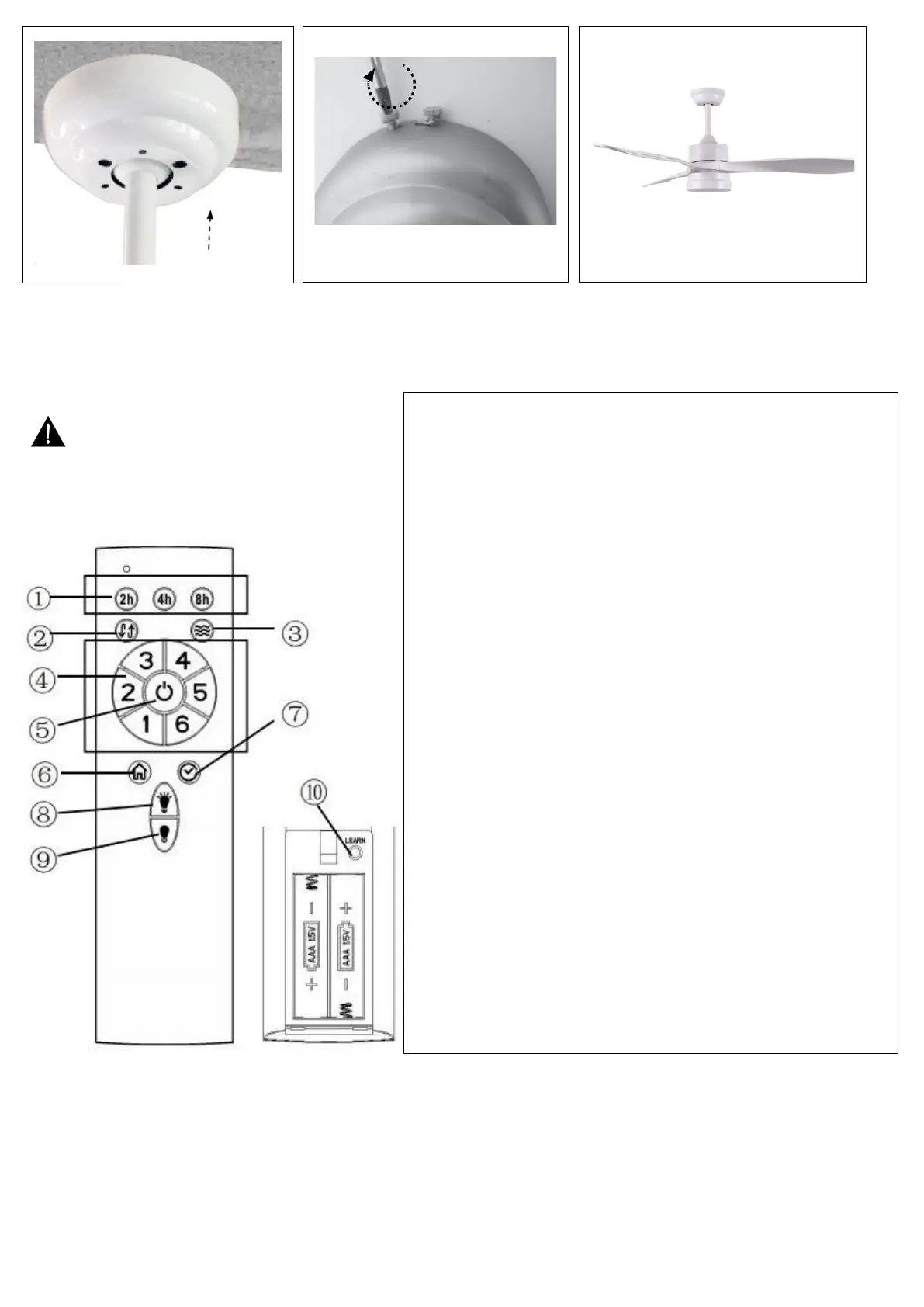 ① Funzione timer: ventilatore e luci possono essere impostati 2,