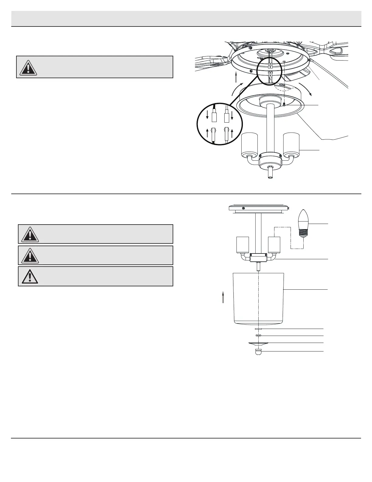 □ Push the light kit tter assembly (I) up to the light kit pan (H) so
