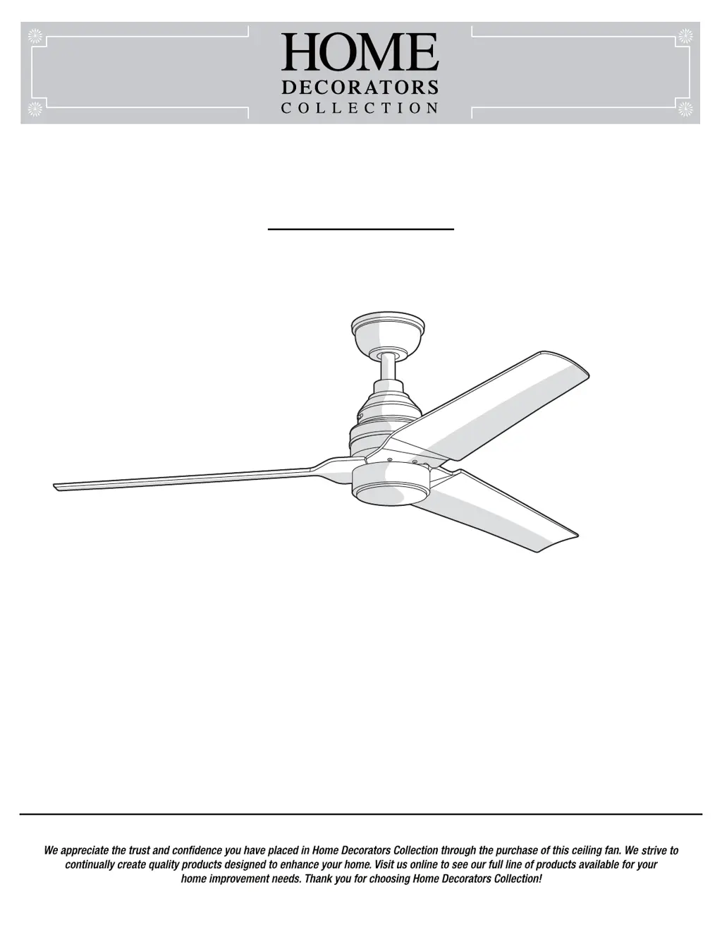 If your Home Decorators Collection Fan is making noise, ensure all motor housing screws and screws attaching the fan blade to the motor hub are tightened. Also, confirm wire nut connections aren't rattling inside the switch housing. Allow a 24-hour "breaking-in" period for new fans, as most noises disappear during this time. If using a ceiling light kit, ensure the glassware is secured tightly. Make sure there is a short distance from the ceiling to the canopy, so it does not touch the ceiling. Finally, ensure your ceiling box is secure, utilizing rubber isolator pads between the mounting bracket and outlet box.
