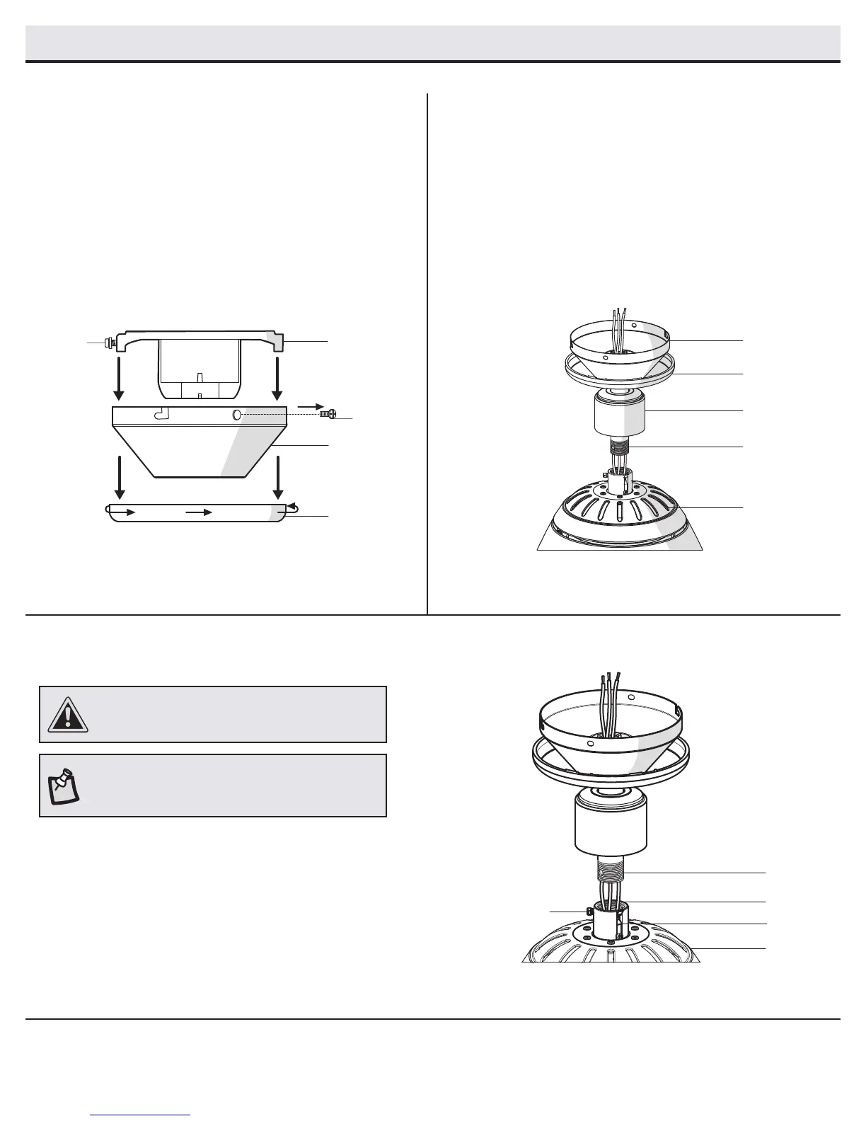 damage to the fan, the downrod (B) and the setscrew