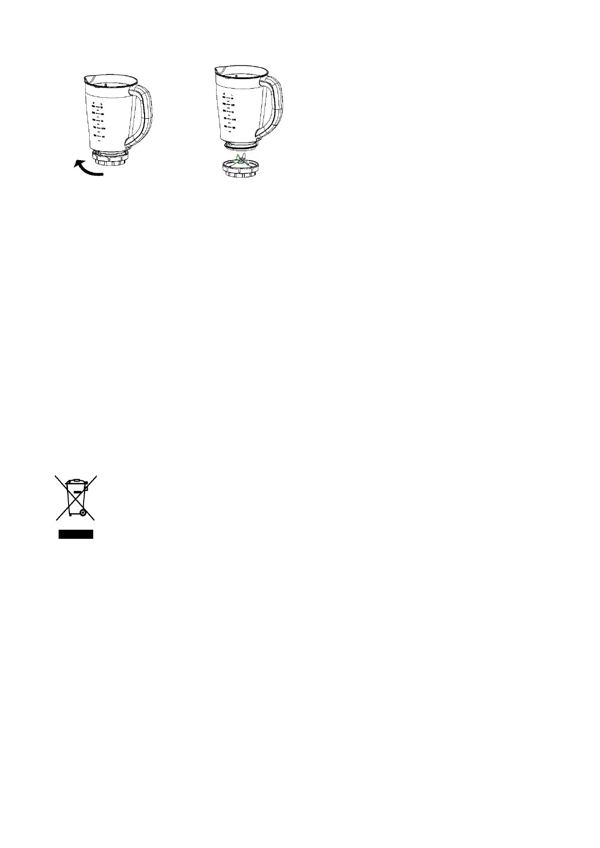 4. Der Behälterboden mit der Messereinheit kann zum Reinigen des Behälters durch Drehen entfernt werden.