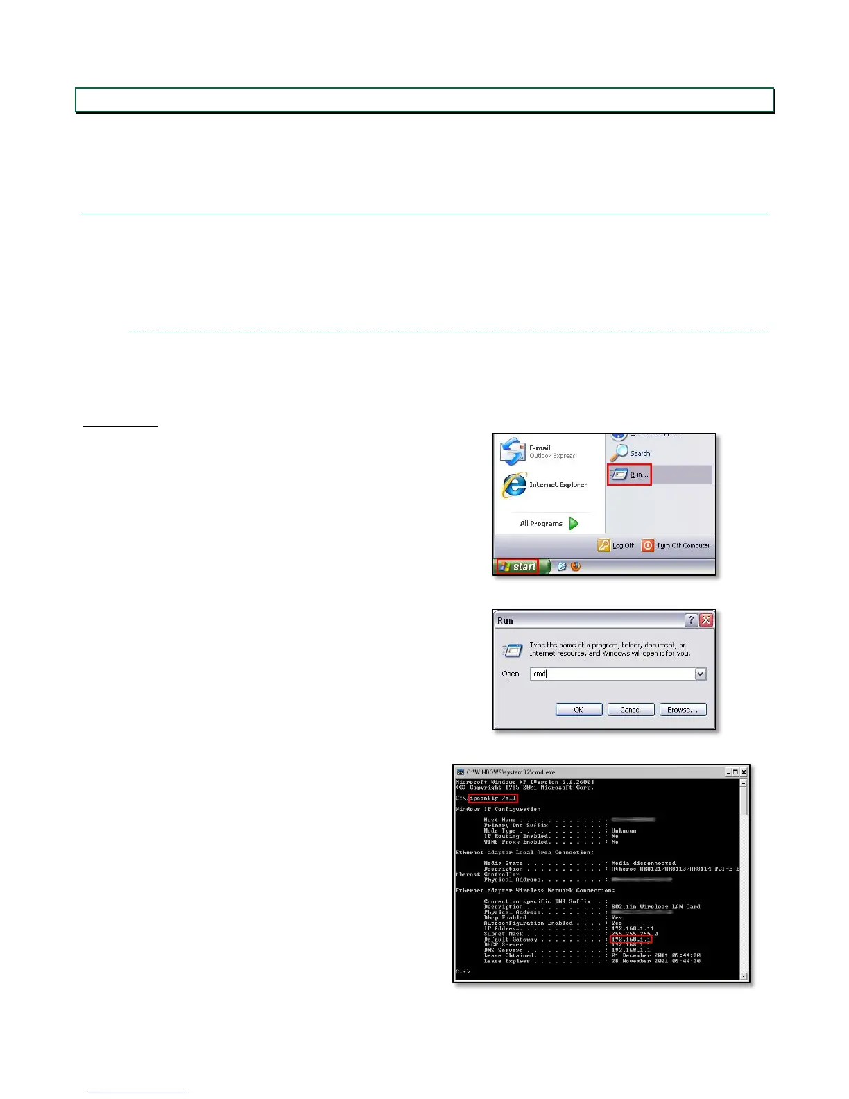 The method used to run IP Config differs according to your operating system: