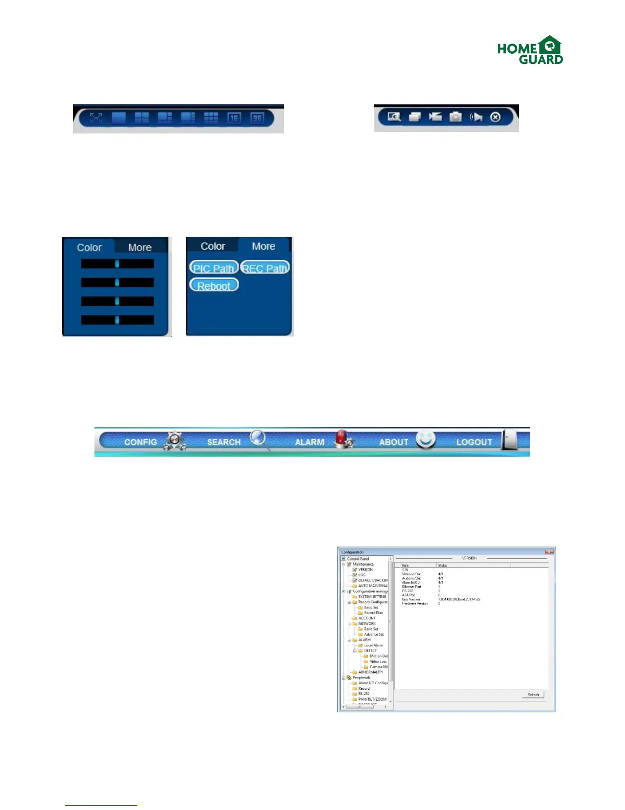The main menu, at the top, allows you to change the DVR’s settings, play recorded files, and adjust cloud alarm
