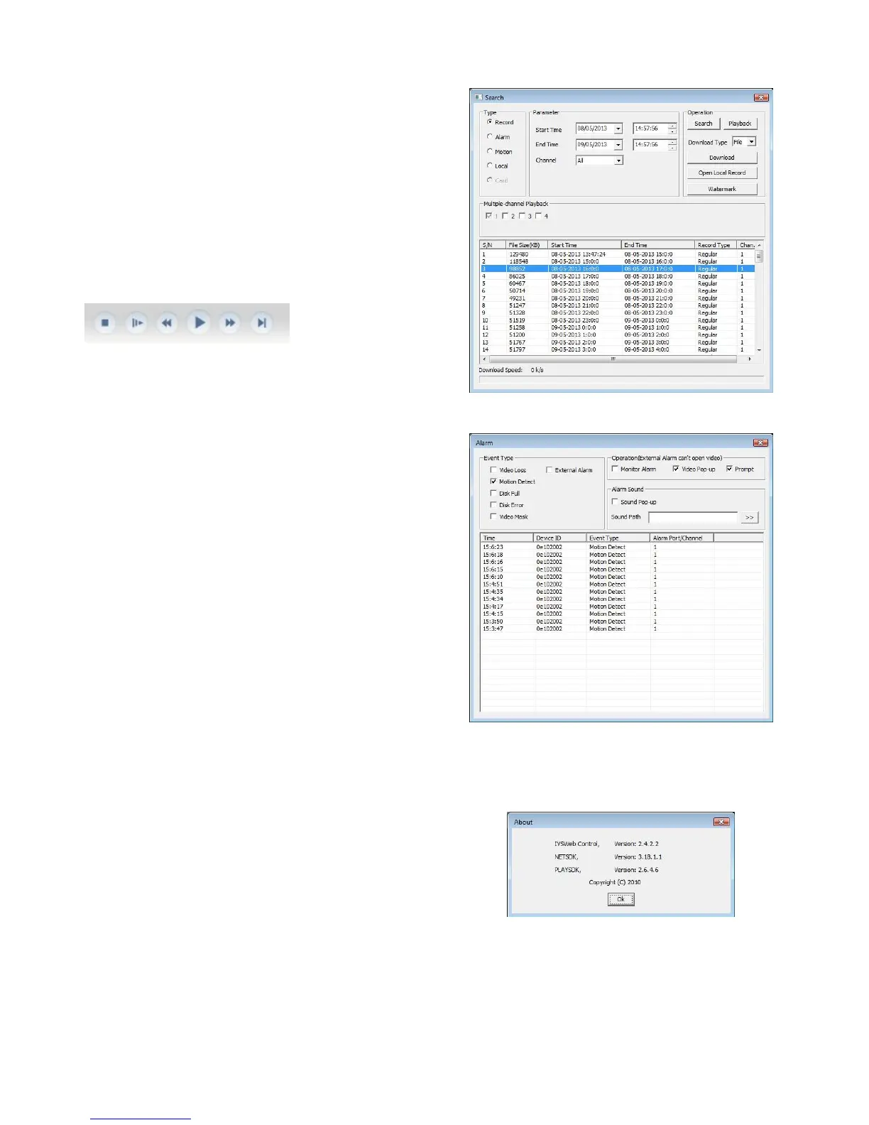 These are the alarms triggered by the DVR, which you