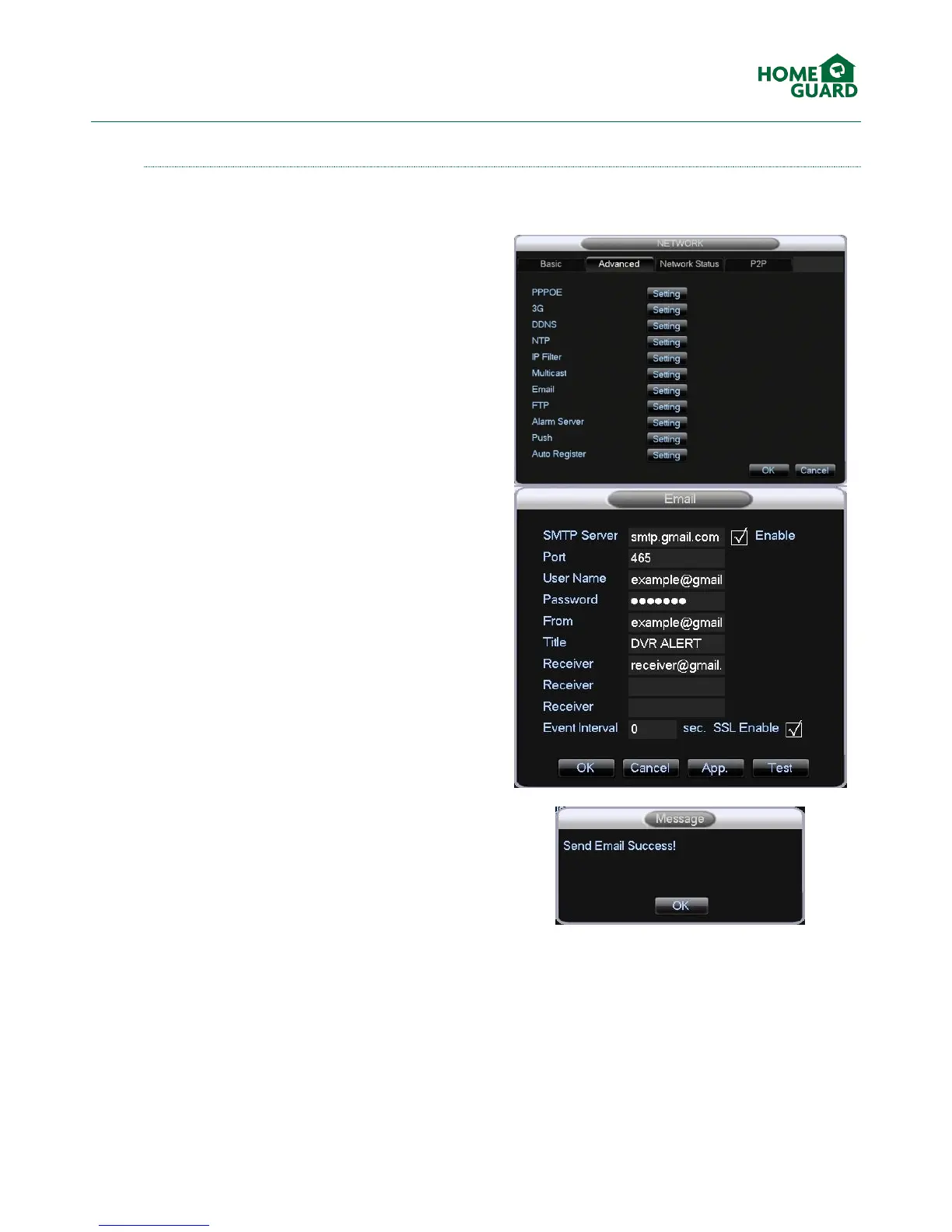 It is possible to set the DVR to send an email to a designated address when events (such as motion detection or