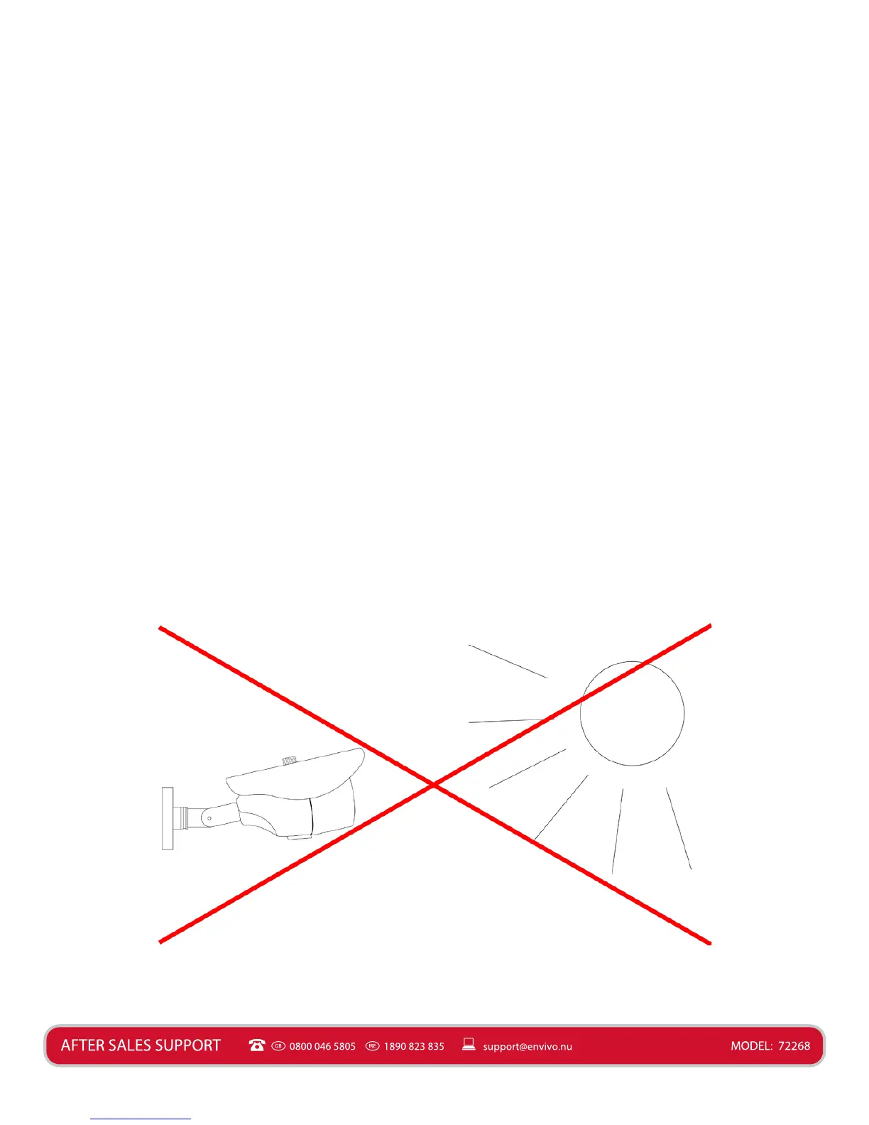 The camera should be mounted so that it does not face a strong light source, as this can give