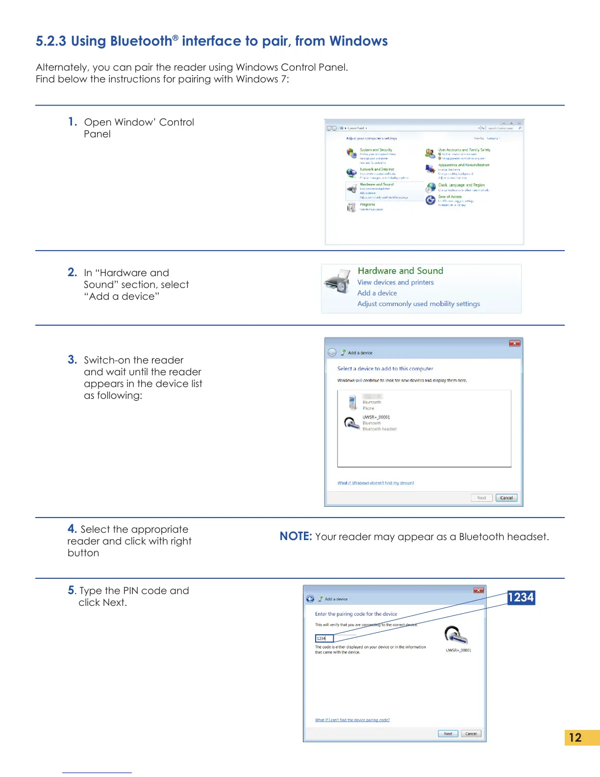 Alternately, you can pair the reader using Windows Control Panel.