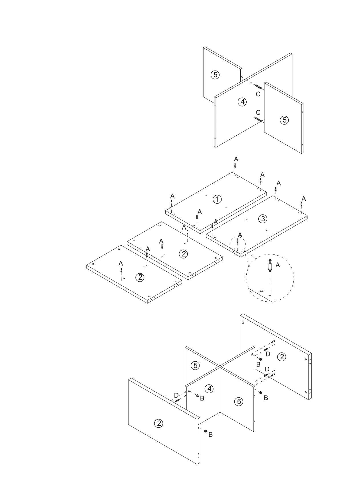Connect 2 x panels (5) to panel (4) using 2 x dowels (C).