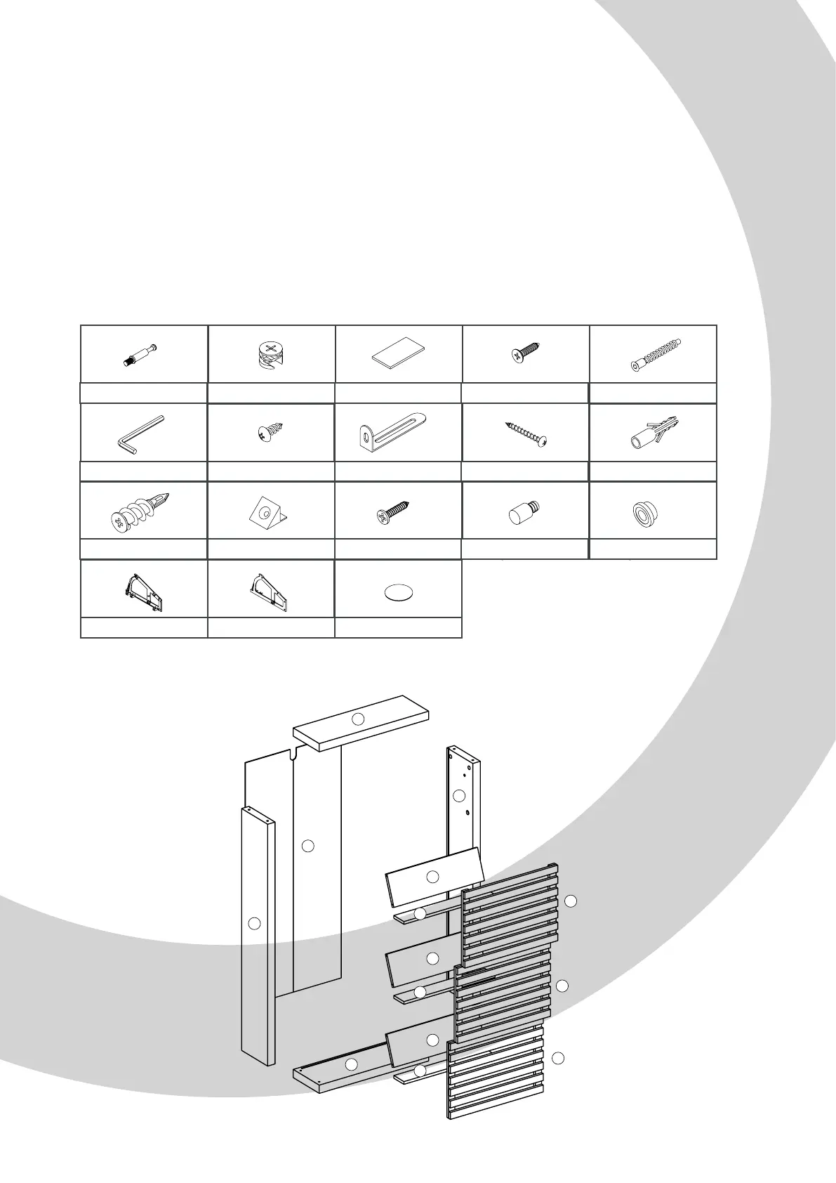 Fixing hardware is not included since dierent surface materials require dierent attachments. Please