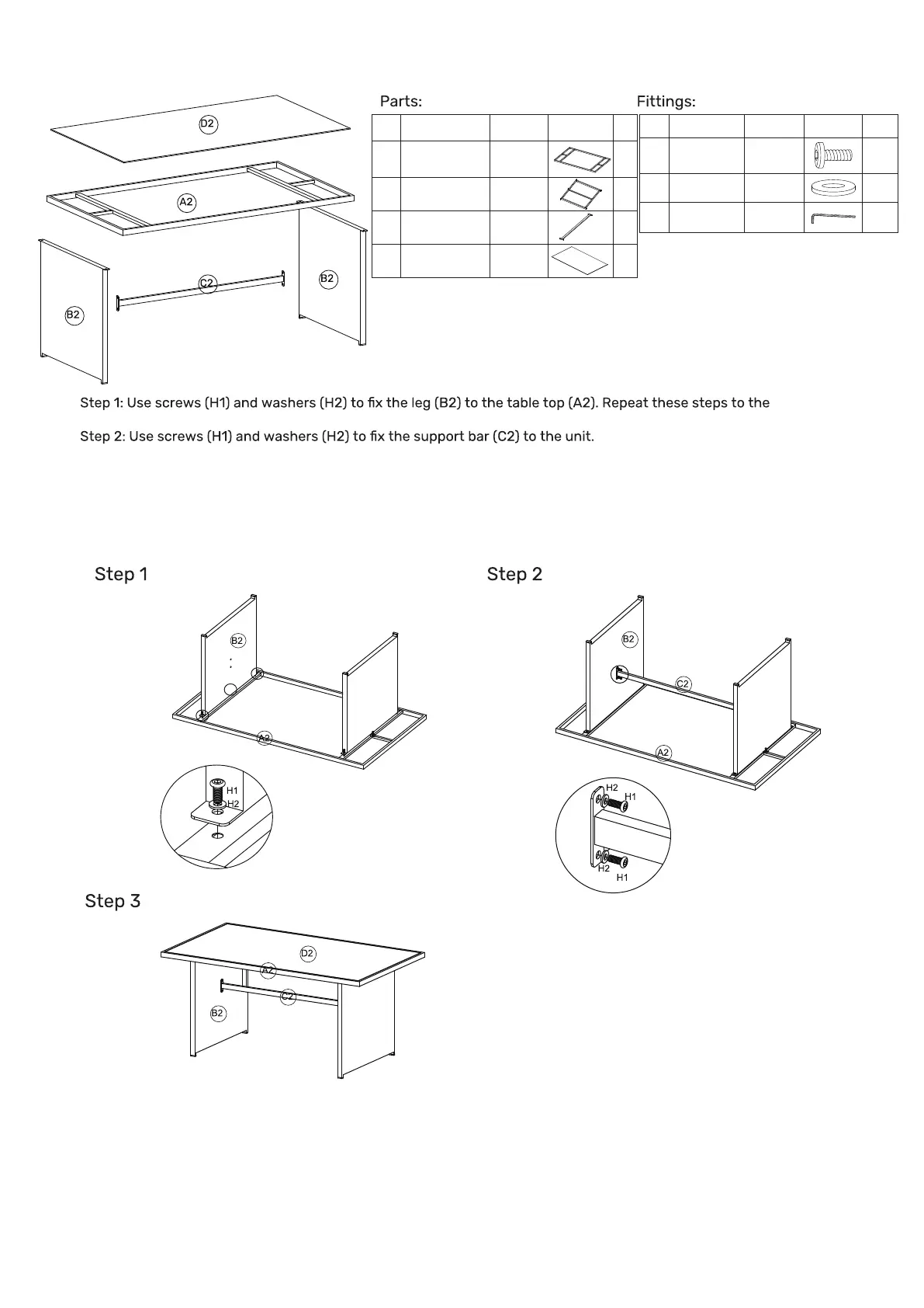 ASSEMBLY INSTRUCTIONS - TABLE