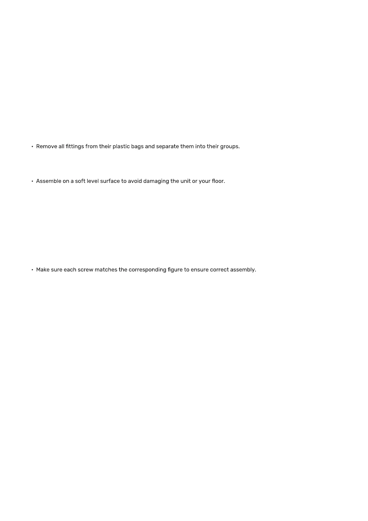 • Do not stand or put weight on the component parts during assembly, as this could cause damage.