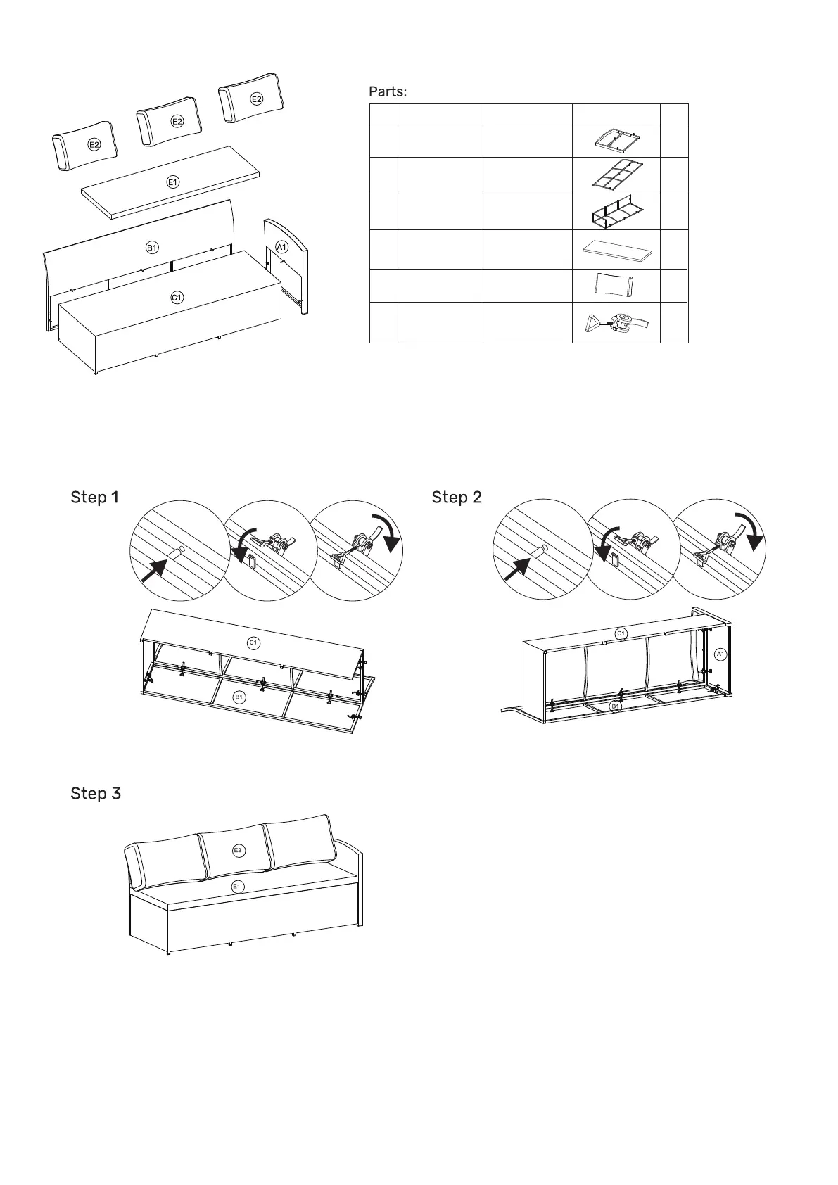 Step 3: Place the seat cushion (E1) and back cushion (E2) on the sofa.