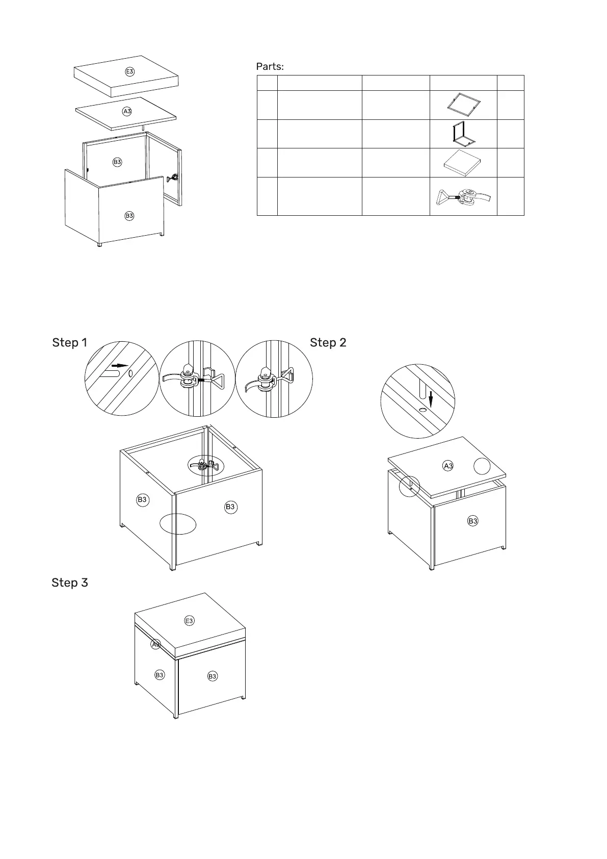 Step 3: Place seat cushion (E3) to the stool top (A3).