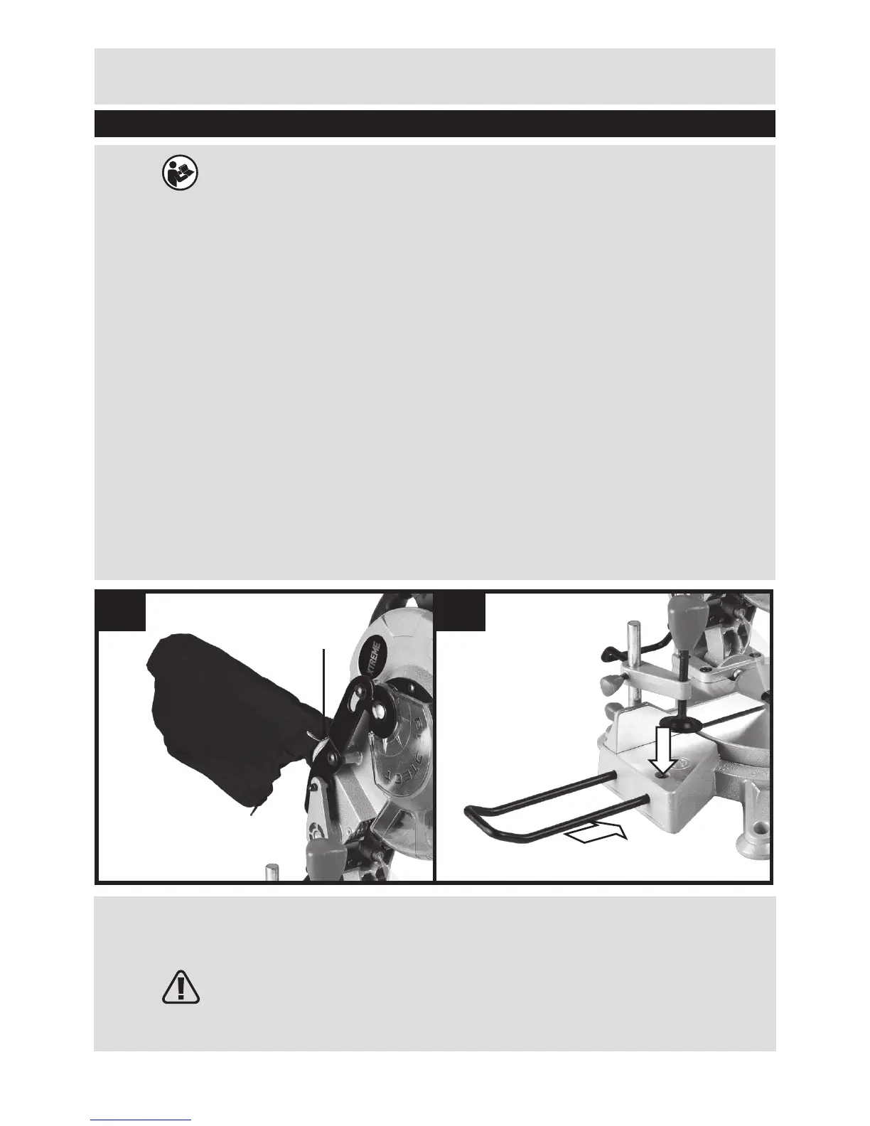 A dust bag is provided for use on your mitre saw. To install it simply t the dust bag over the