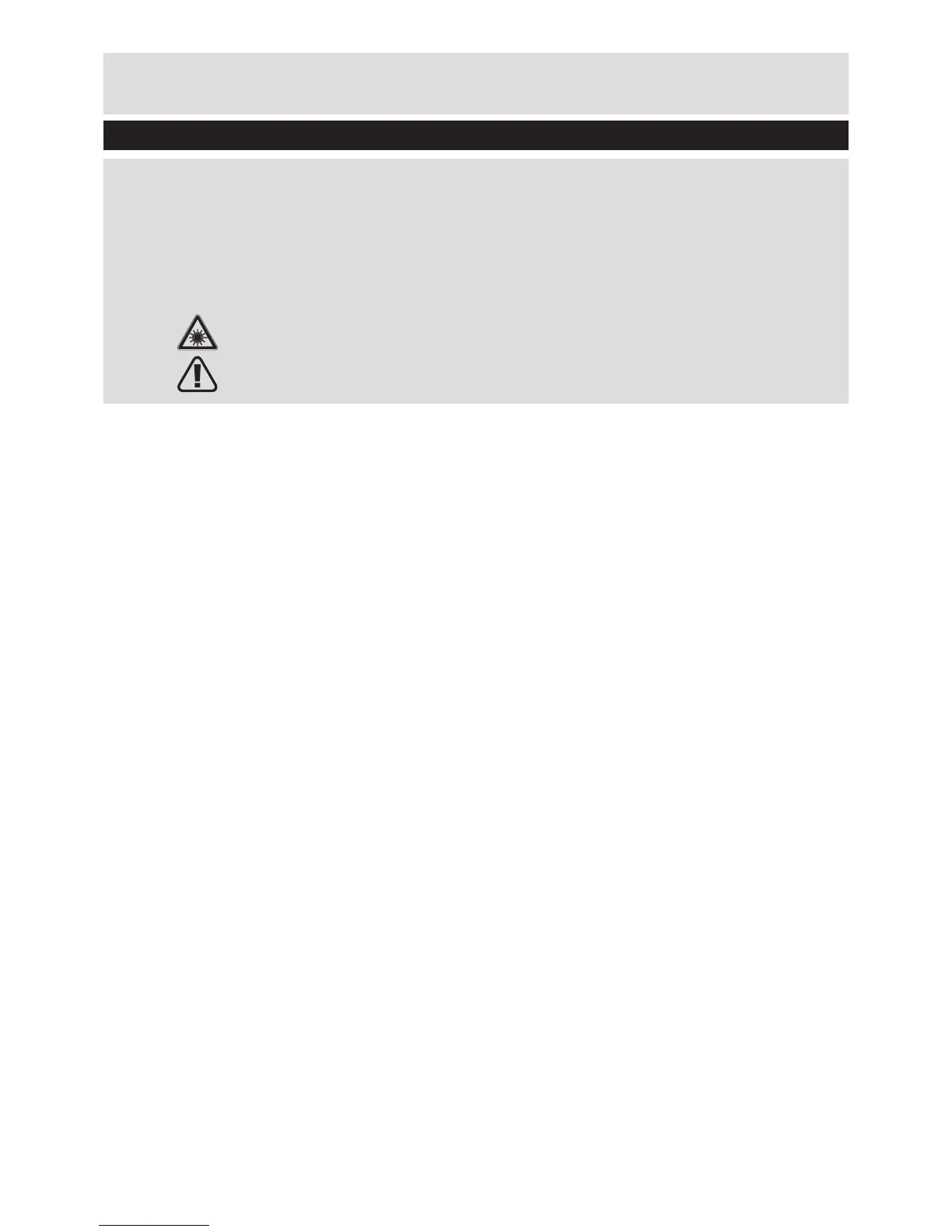 WARNING: Never stare directly into the laser beam and never point the beam
