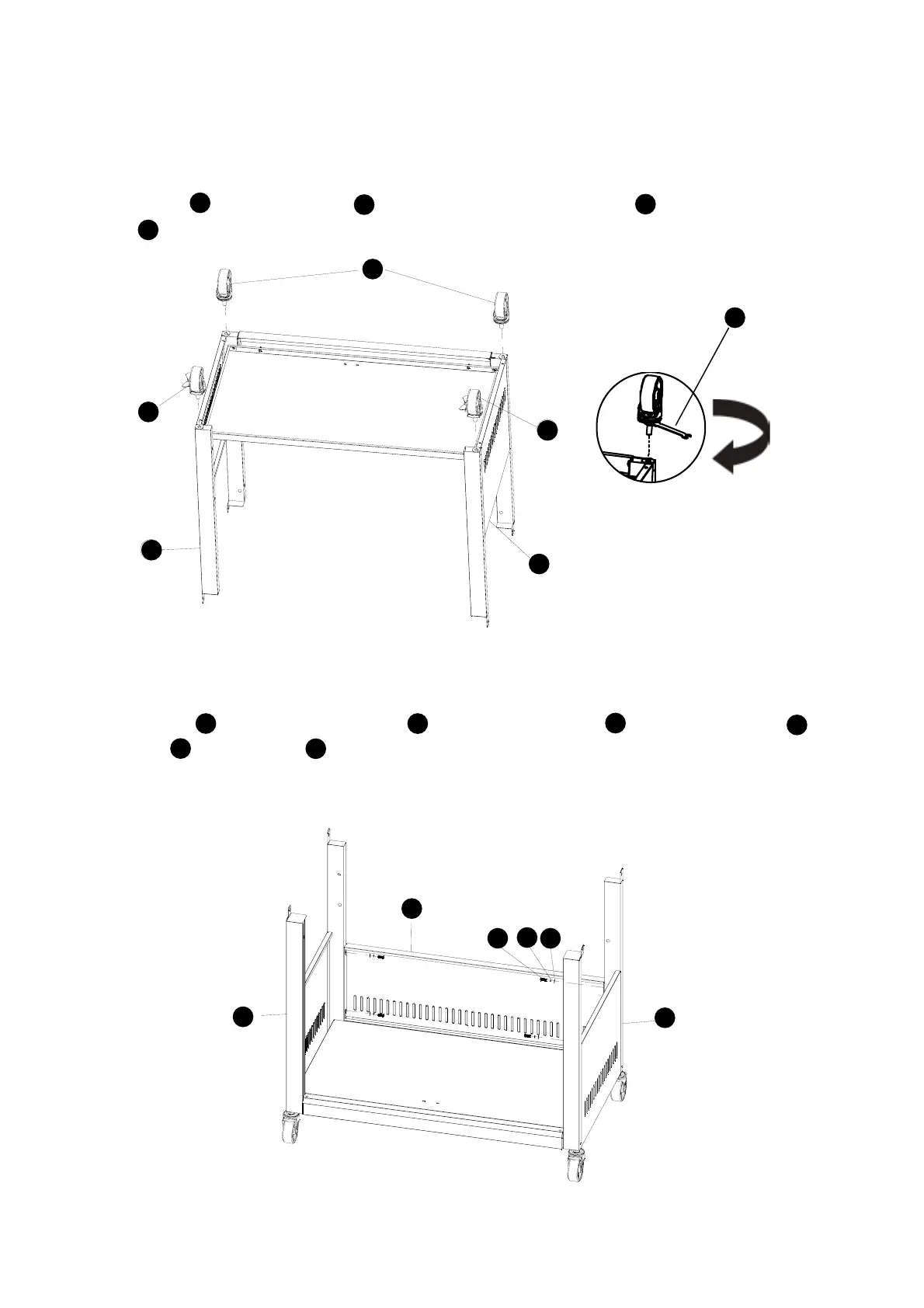 Apply the Castor and Locking castor to the leg of the Left cart assembly and the Right cart