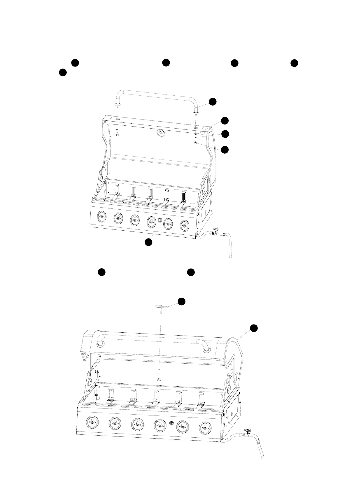 Fix the lid handle on the lid of the grill assembly using M6 plain washer M6 spring washer and