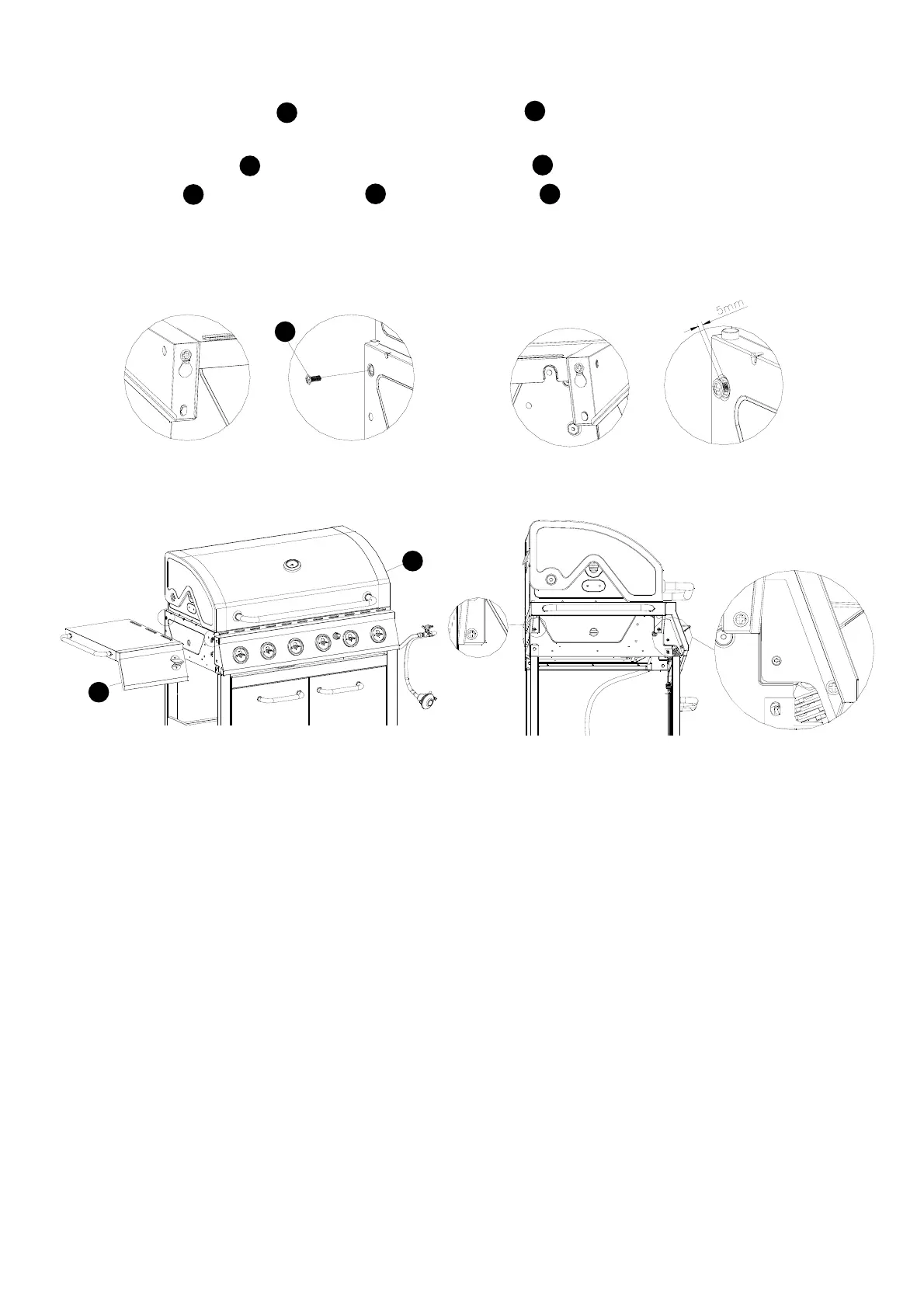 Fix the side table and the grill assembly using M6*16mm bolt . Secure the bolts tightly with a