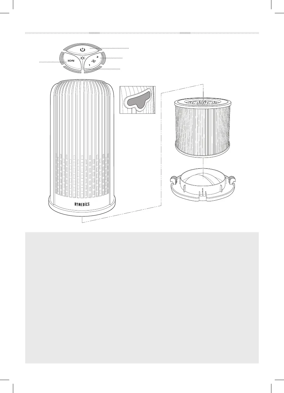 When on, the ioniser assists in the air purication process.