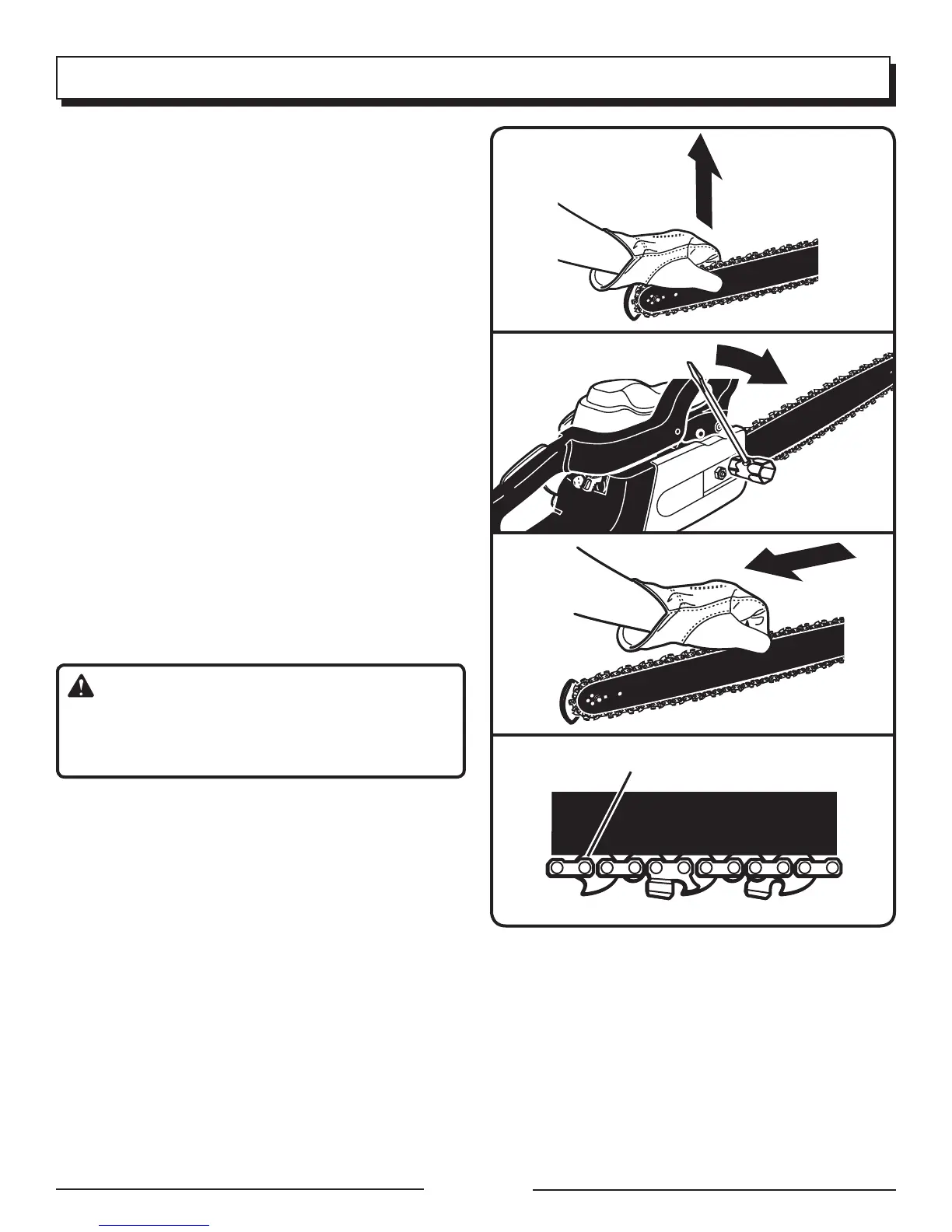 ning. The saw chain is very sharp. Always wear protective