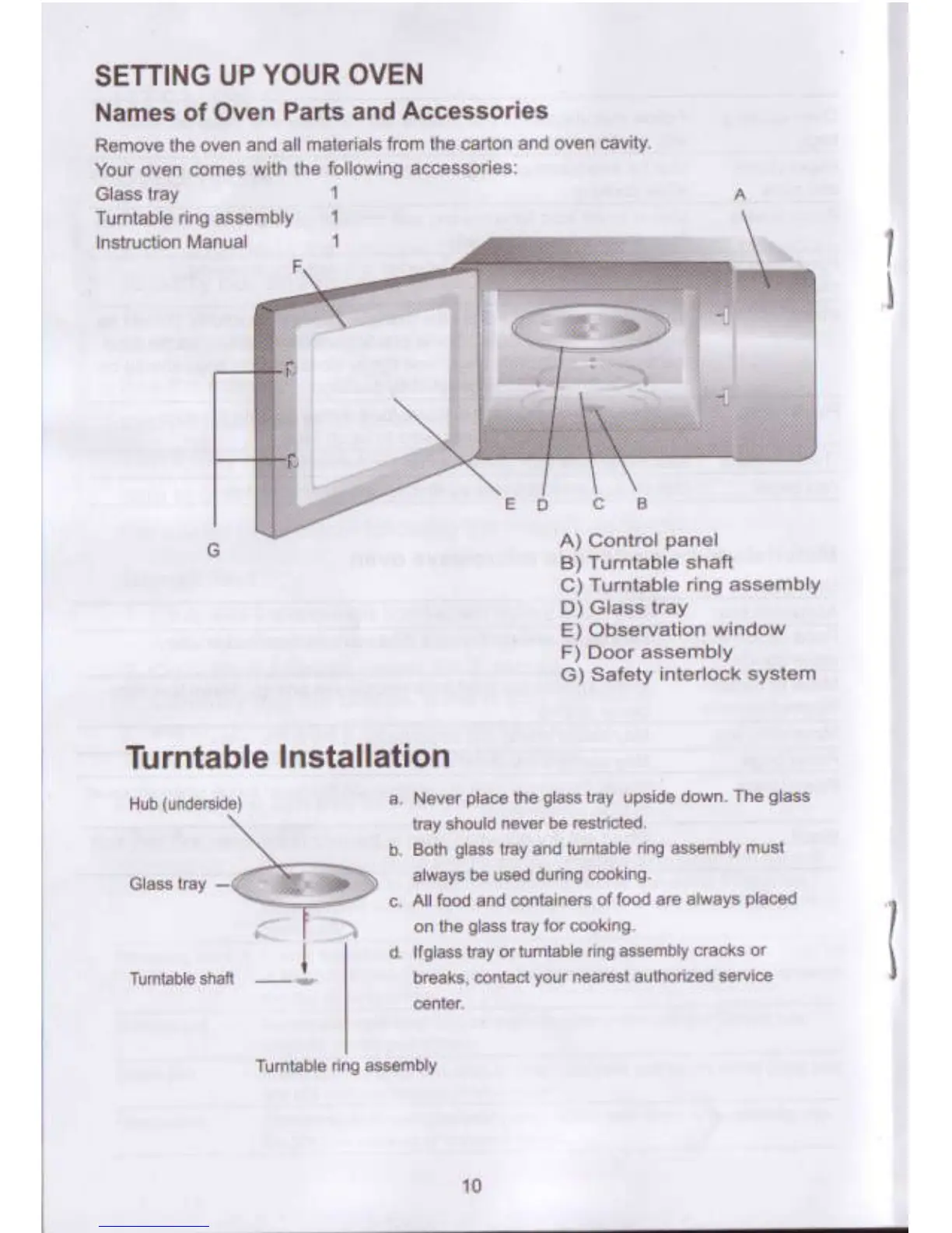 Homemaker EM925ENV - Setting Up Your Oven; Oven Parts and Accessories; Turntable Installation