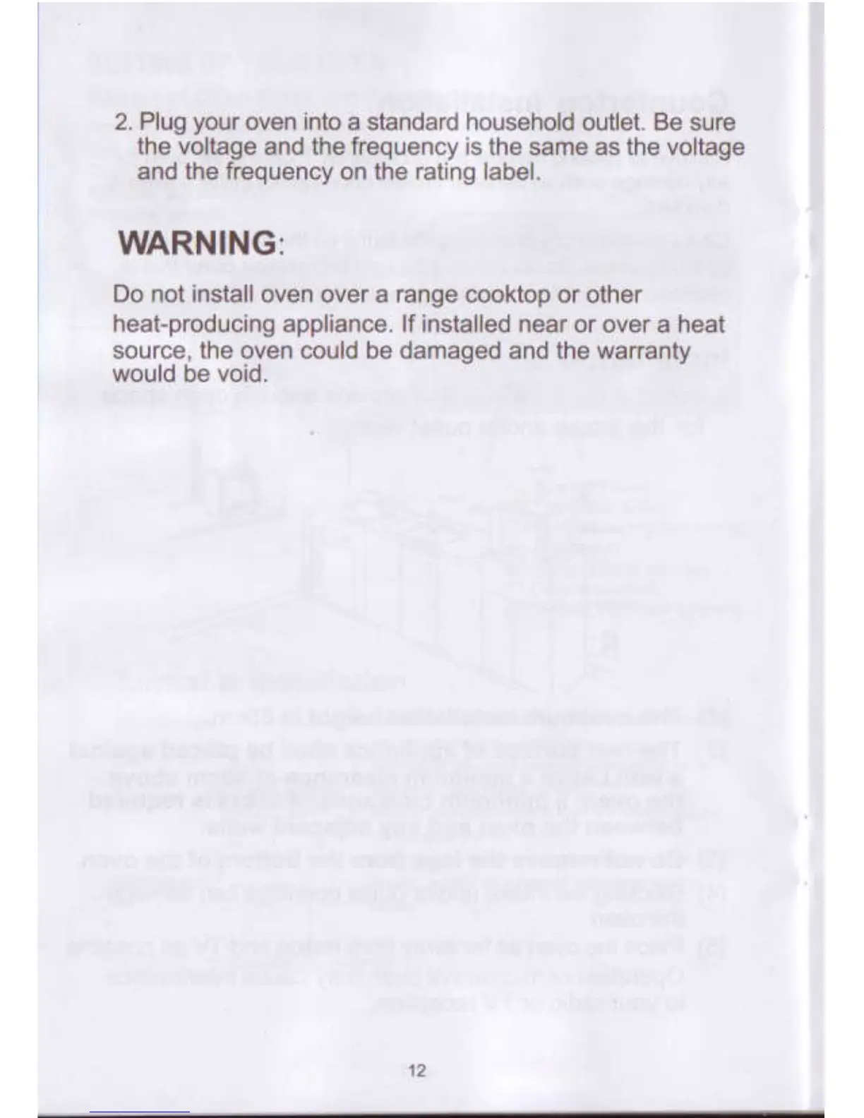Homemaker EM925ENV - Power Connection; Installation Warning