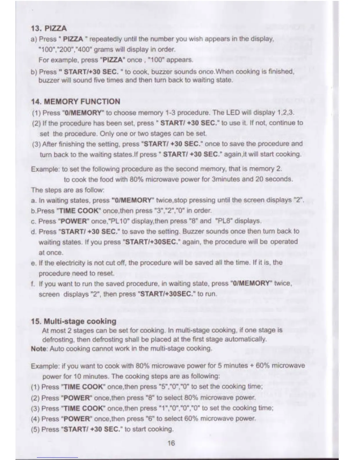 Homemaker EM925ENV - Pizza Function; Memory Function; Multi-stage Cooking